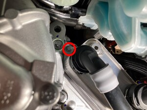 - 如果速度在 7000 RPM 左右徘徊,则说明泵存在气锁状况。请重新执行真空加注。继续添加冷却液并排空空气,直至冷却液液位介于罐上的 NOM 与 MAX 线之间。