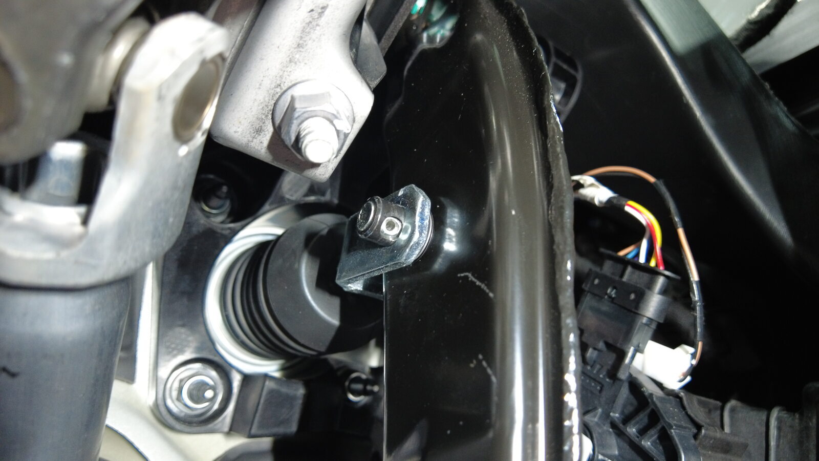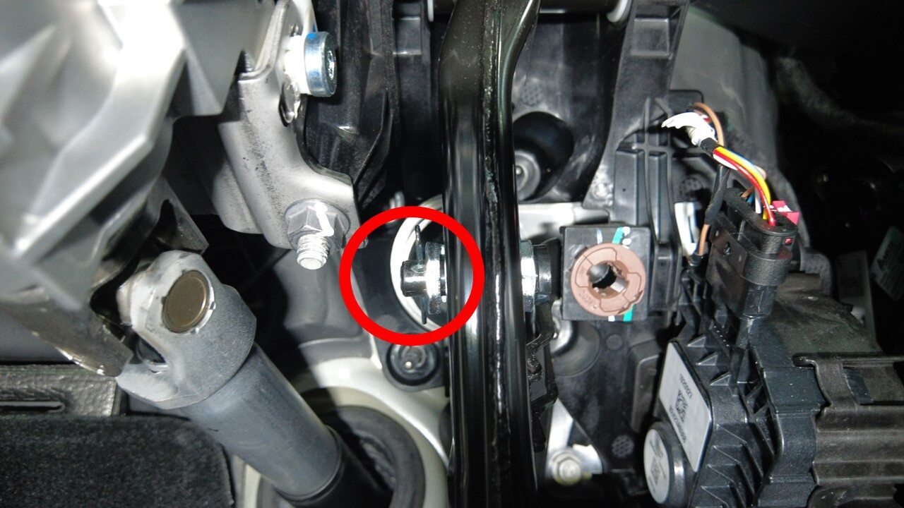 将制动踏板与 iBooster 杆对齐,然后将 U 型夹销安装到制动踏板总成上。