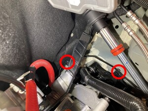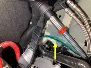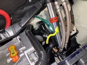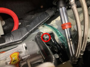 松开将冷却器至高压电池软管固定到车辆的卡子。