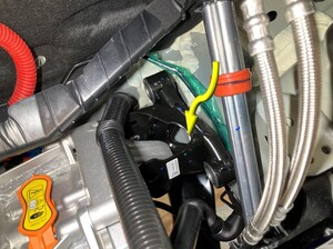 将高压连接器杆锁安装到前驱动单元高压电缆连接器。