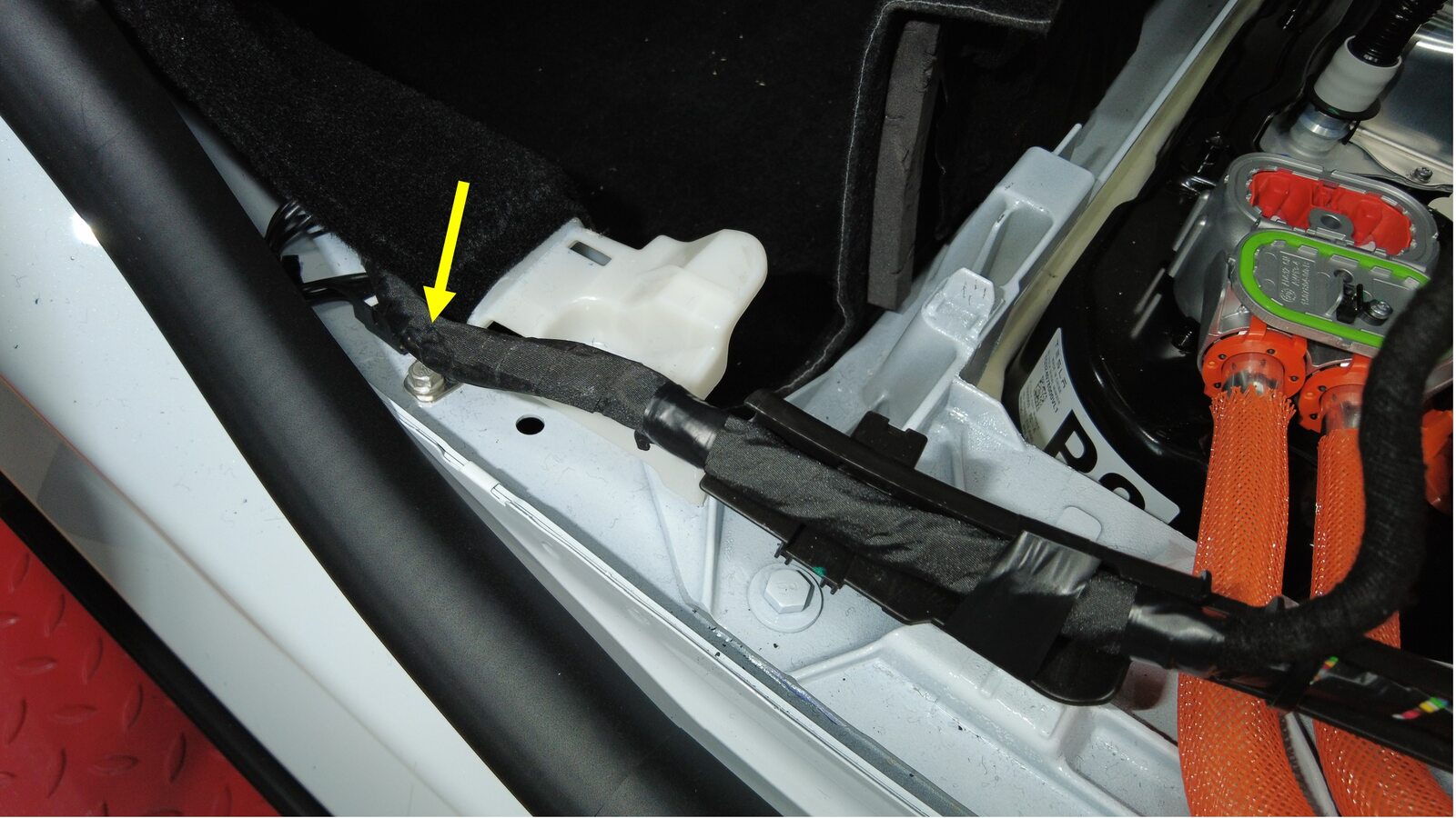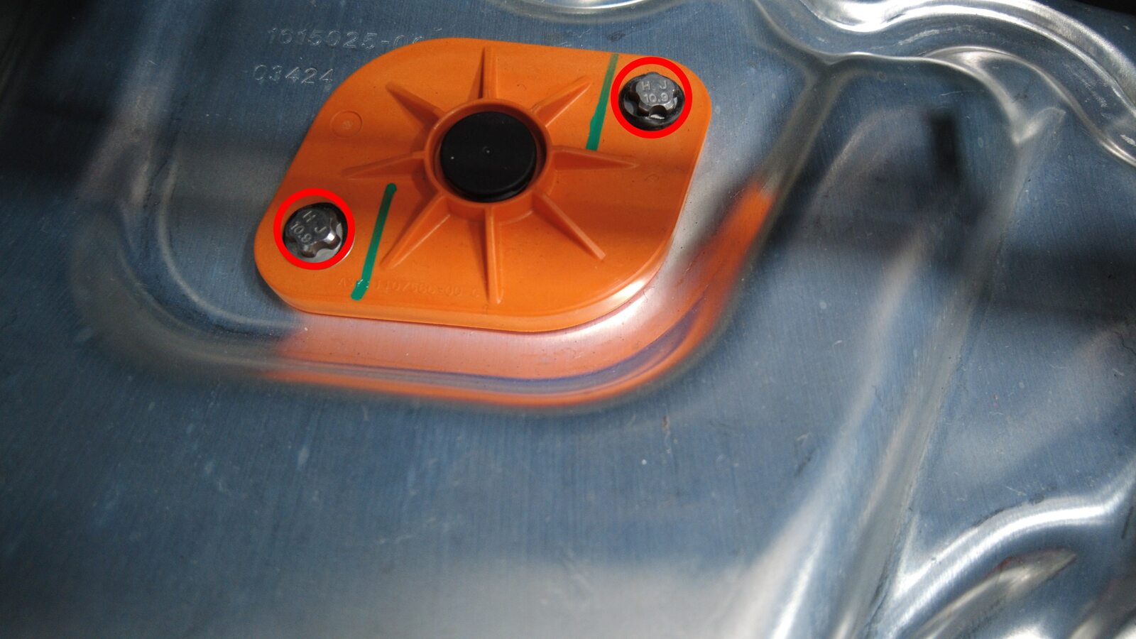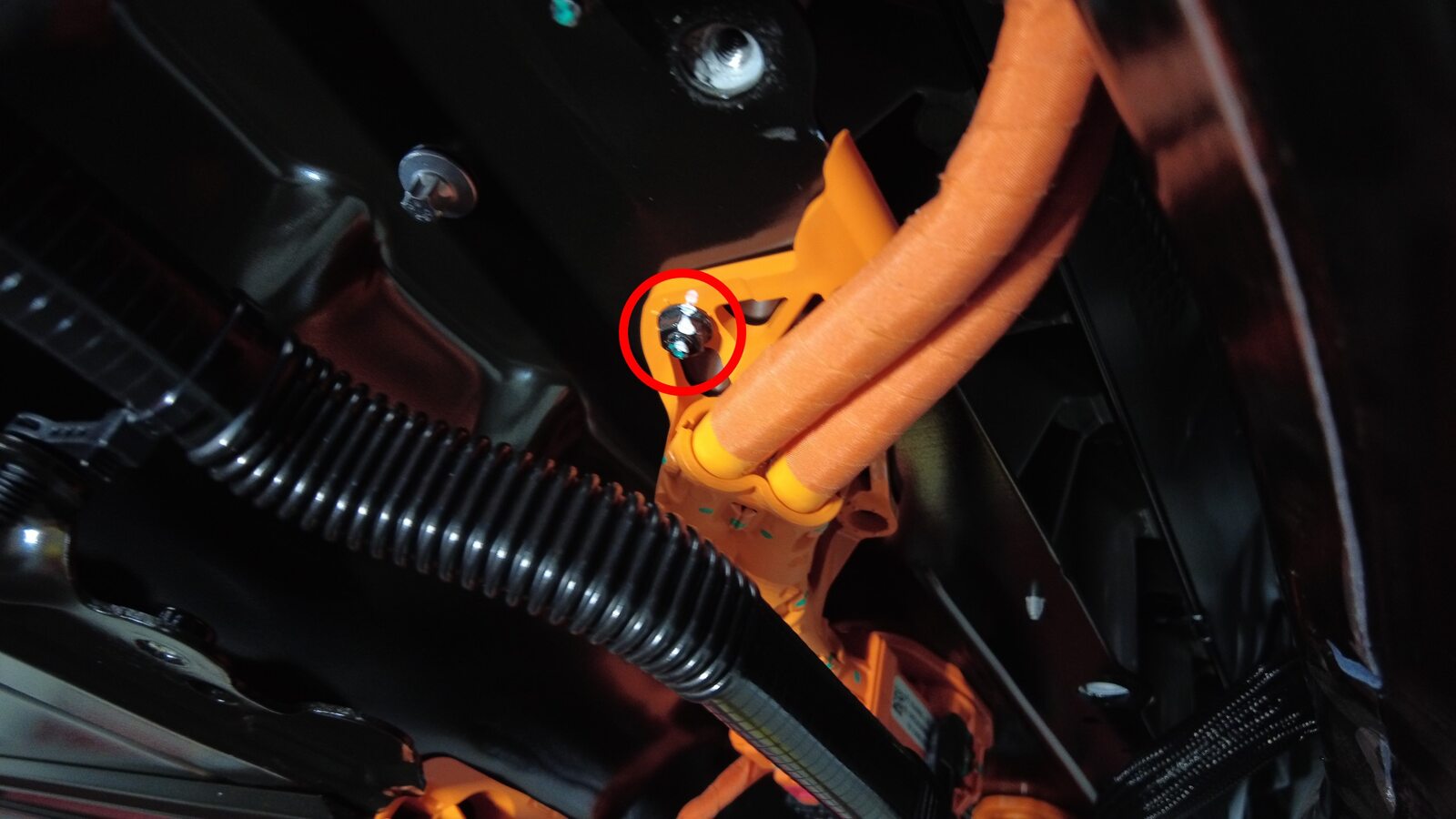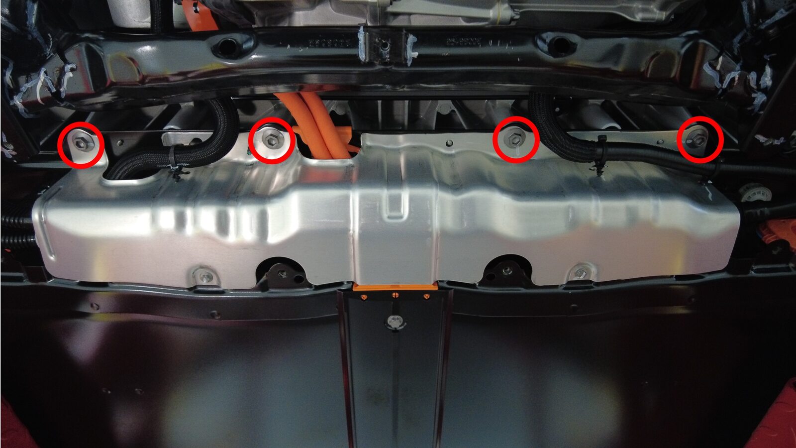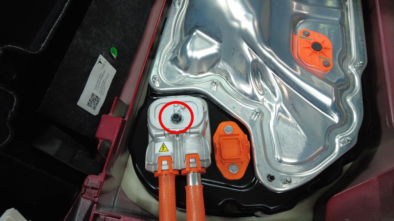 Separate carpet perforation below RH front seat to access RH middle inner HV battery bolt