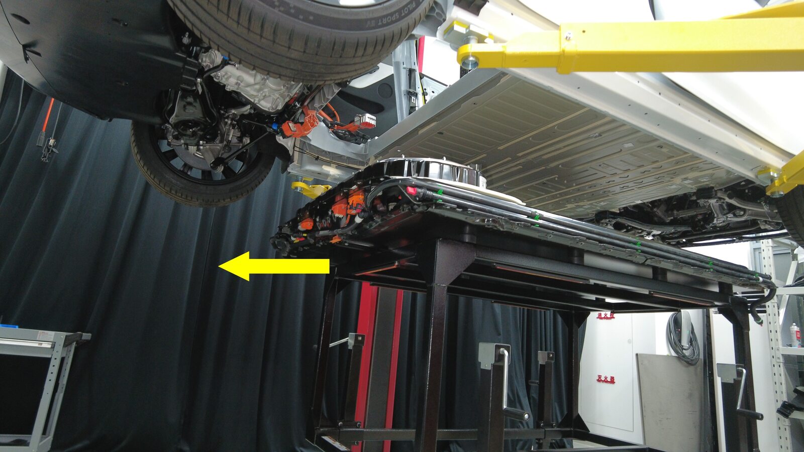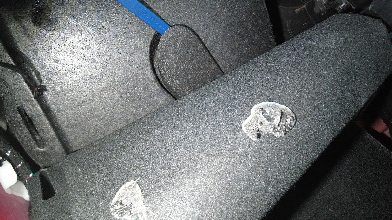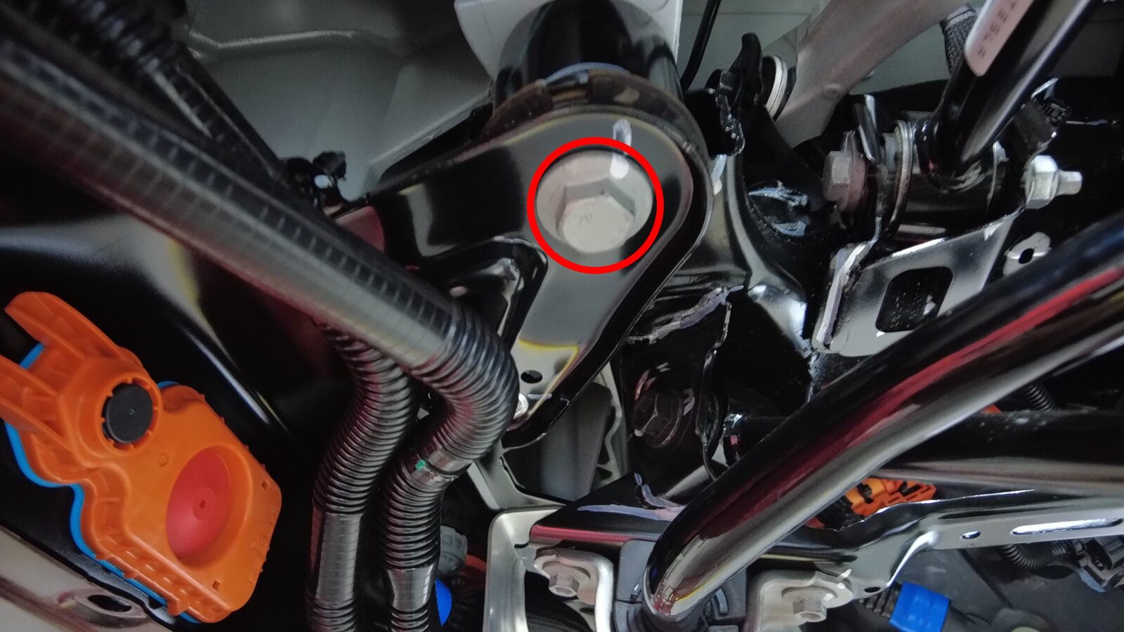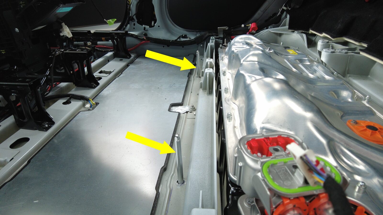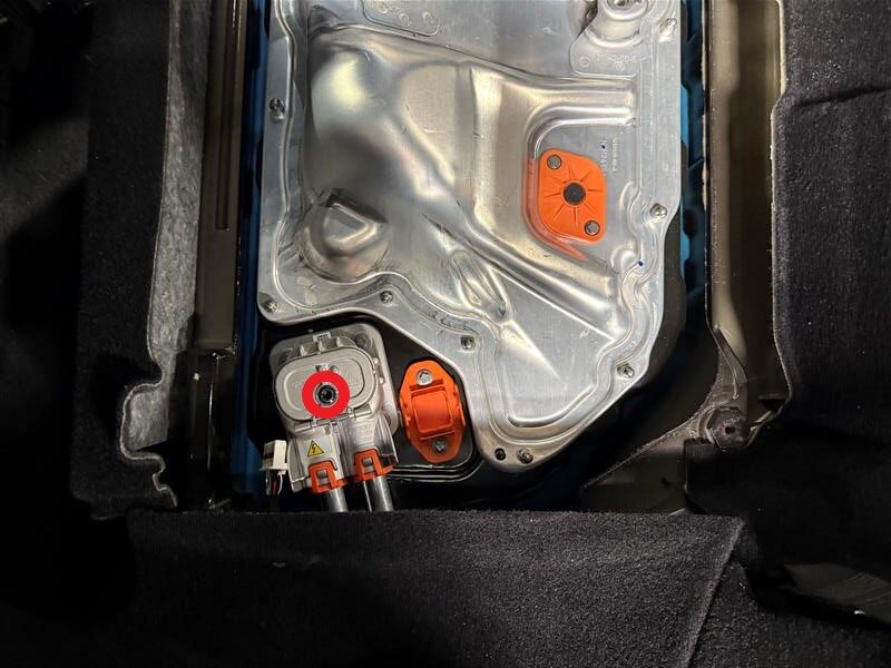 Separate carpet perforation below RH front seat to access RH middle inner HV battery bolt