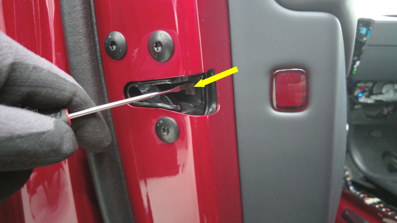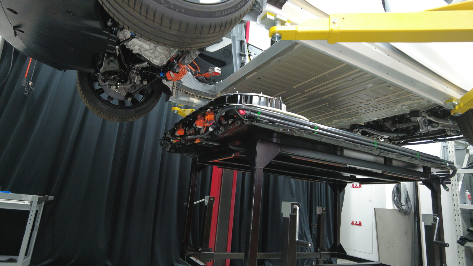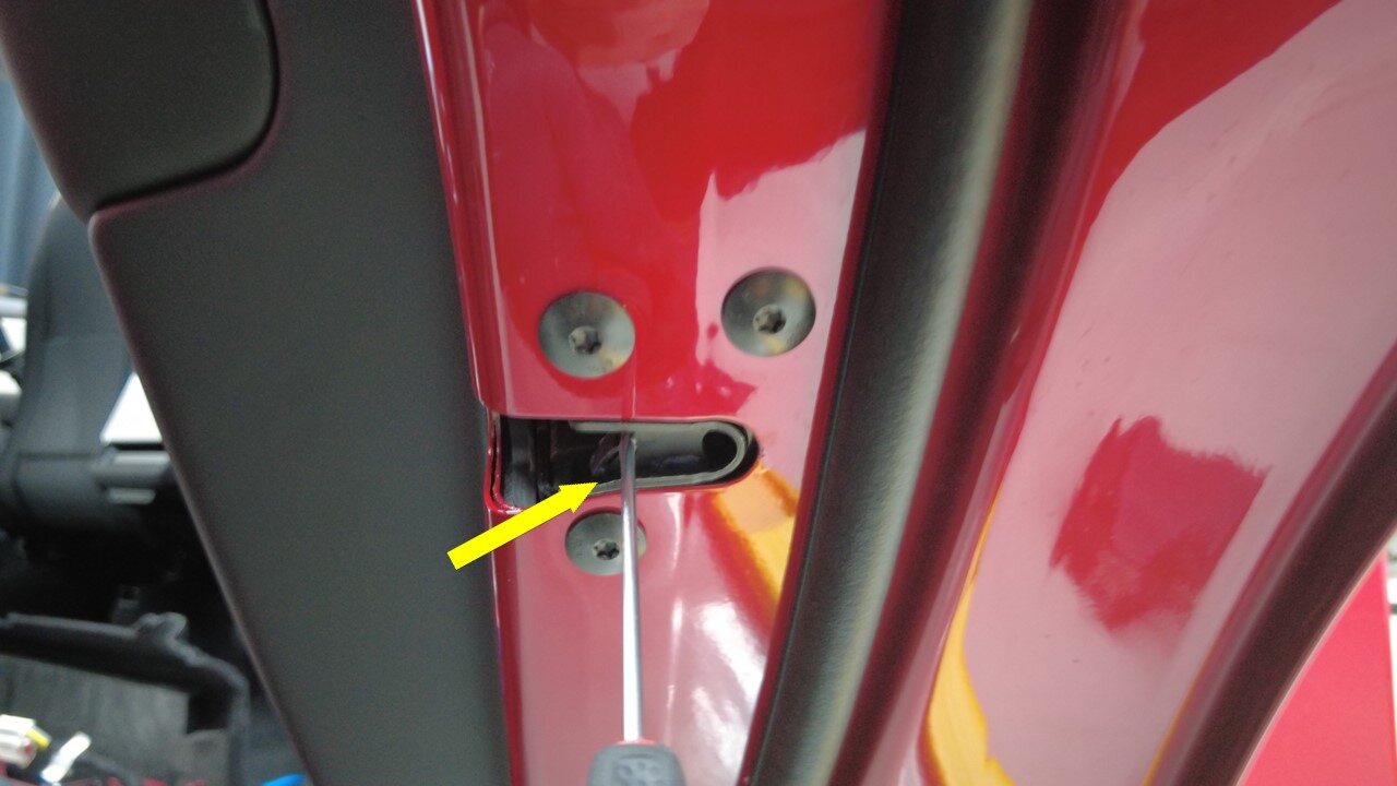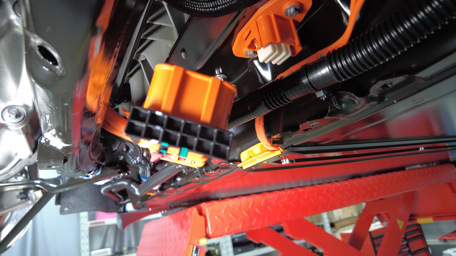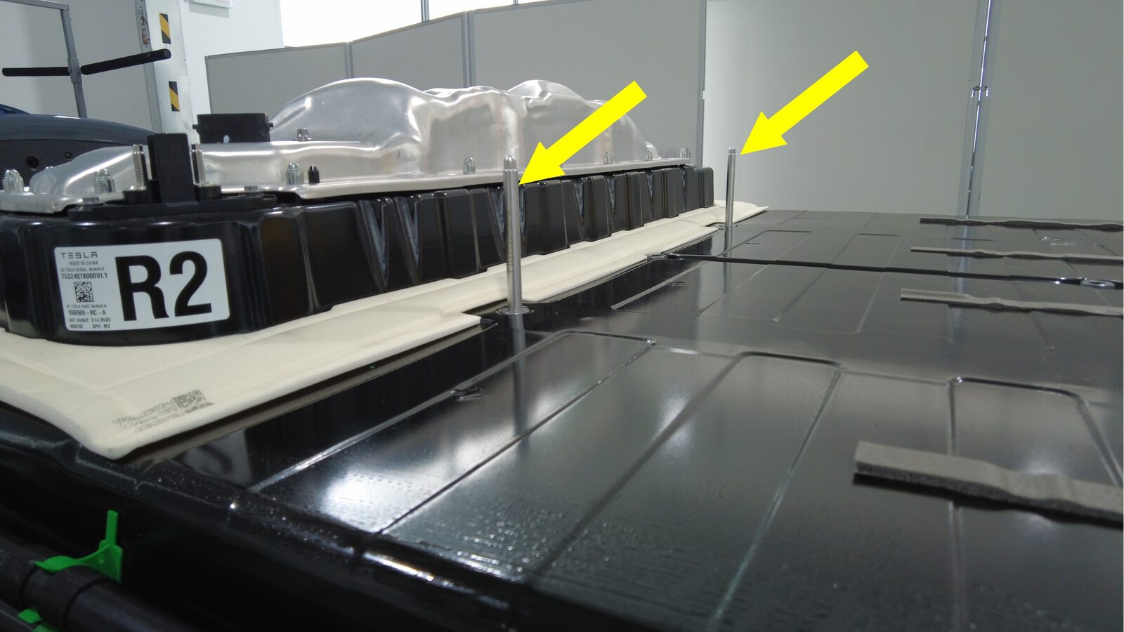 Separate carpet perforation below RH front seat to access RH middle inner HV battery bolt