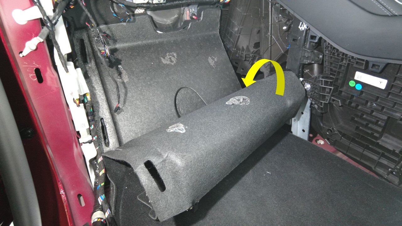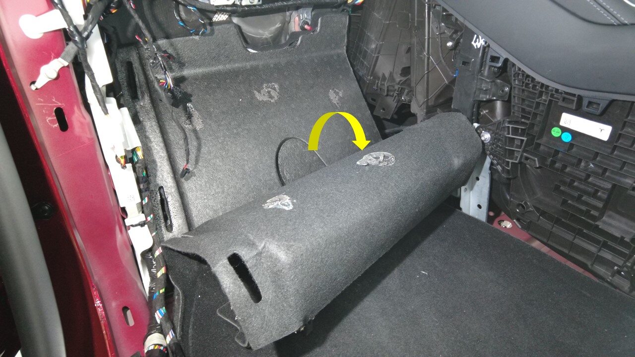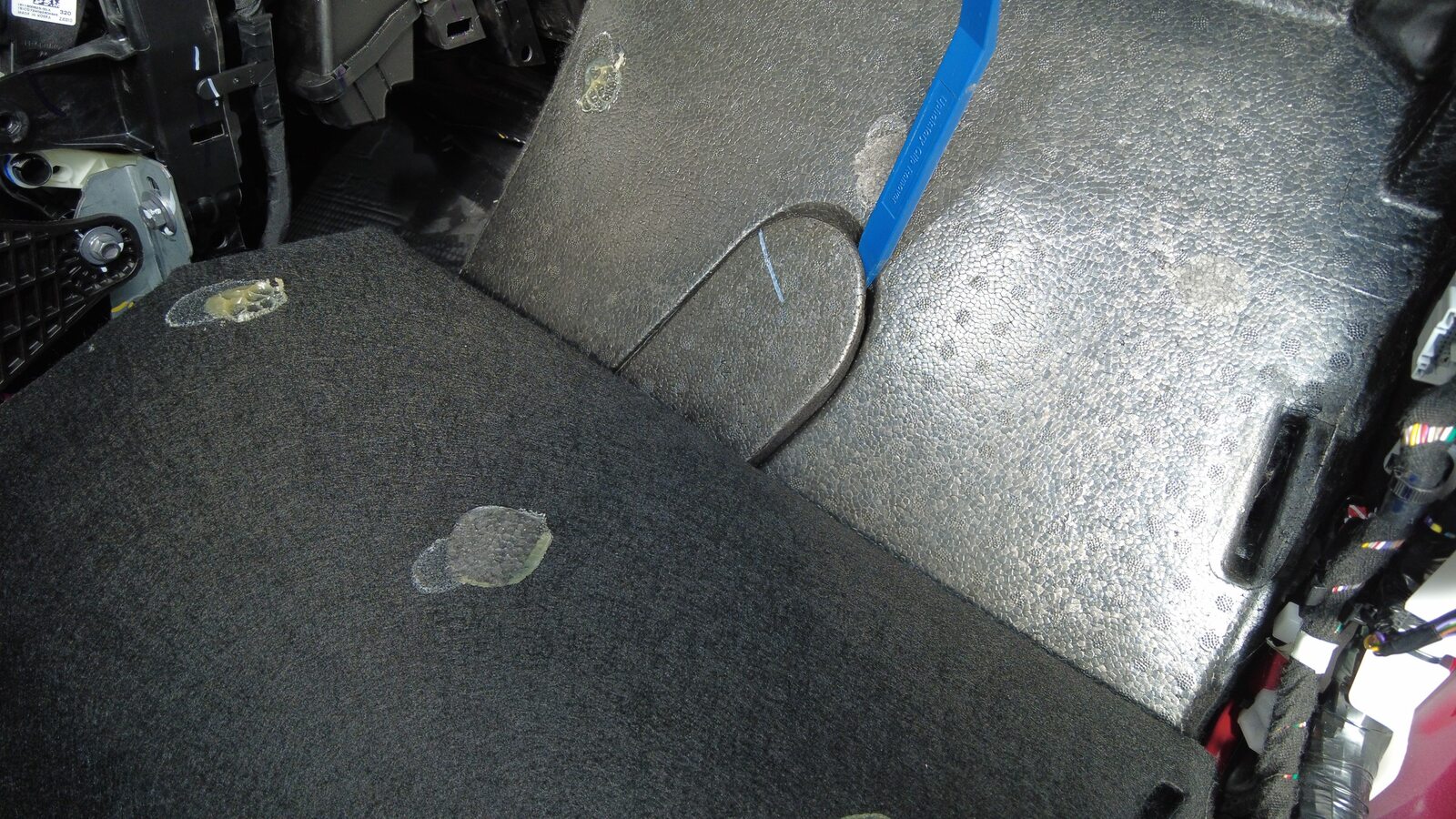 Separate carpet perforation below LH front seat to access LH middle inner HV battery bolt