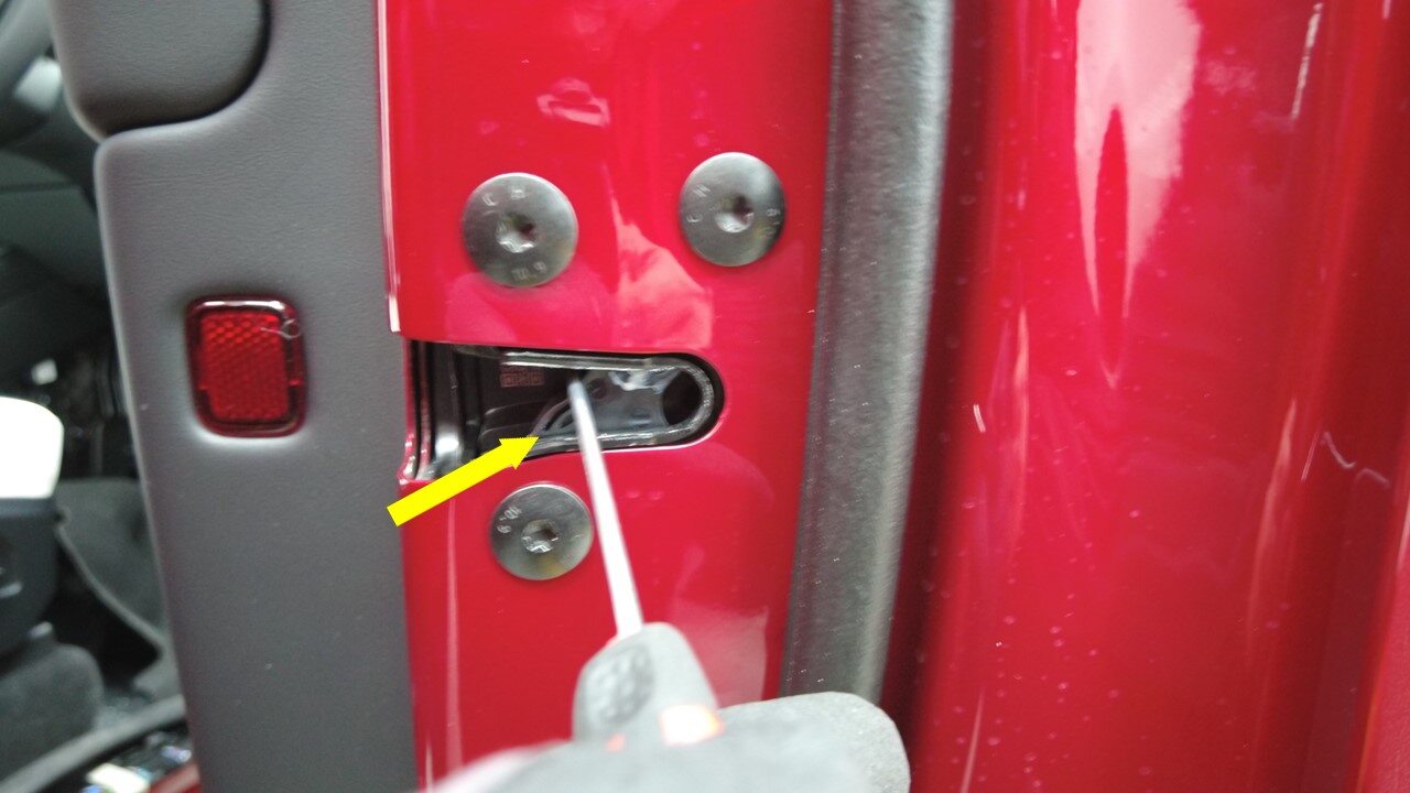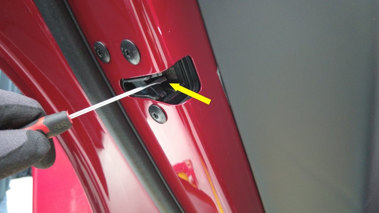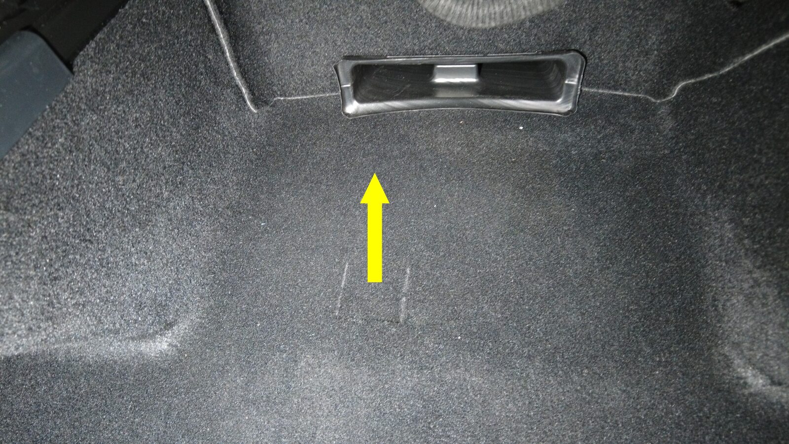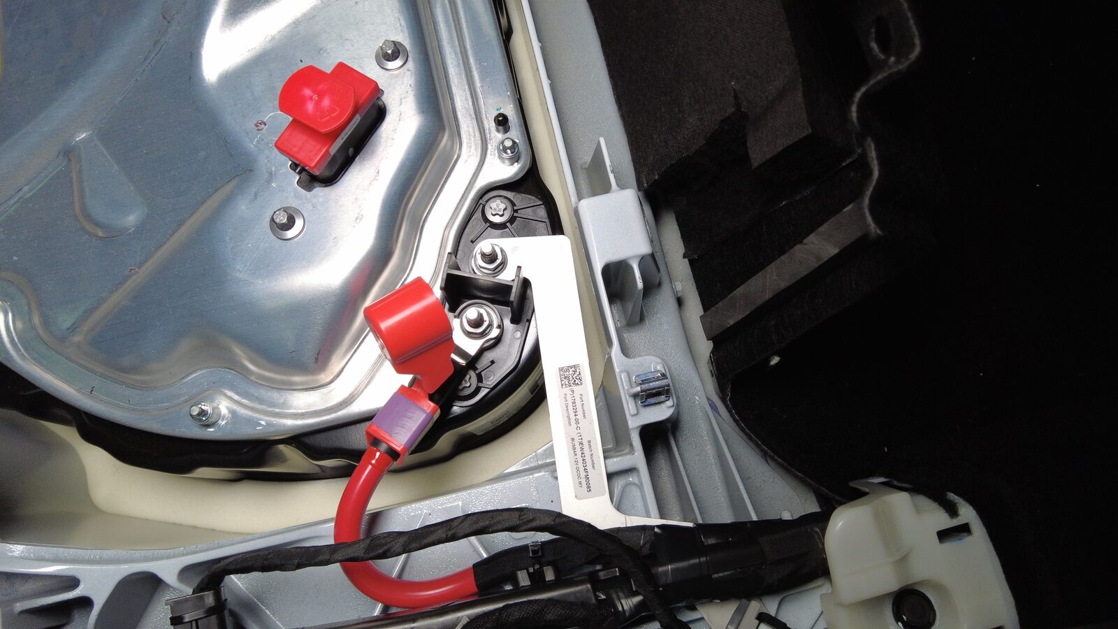 Separate carpet perforation below LH front seat to access LH middle inner HV battery bolt