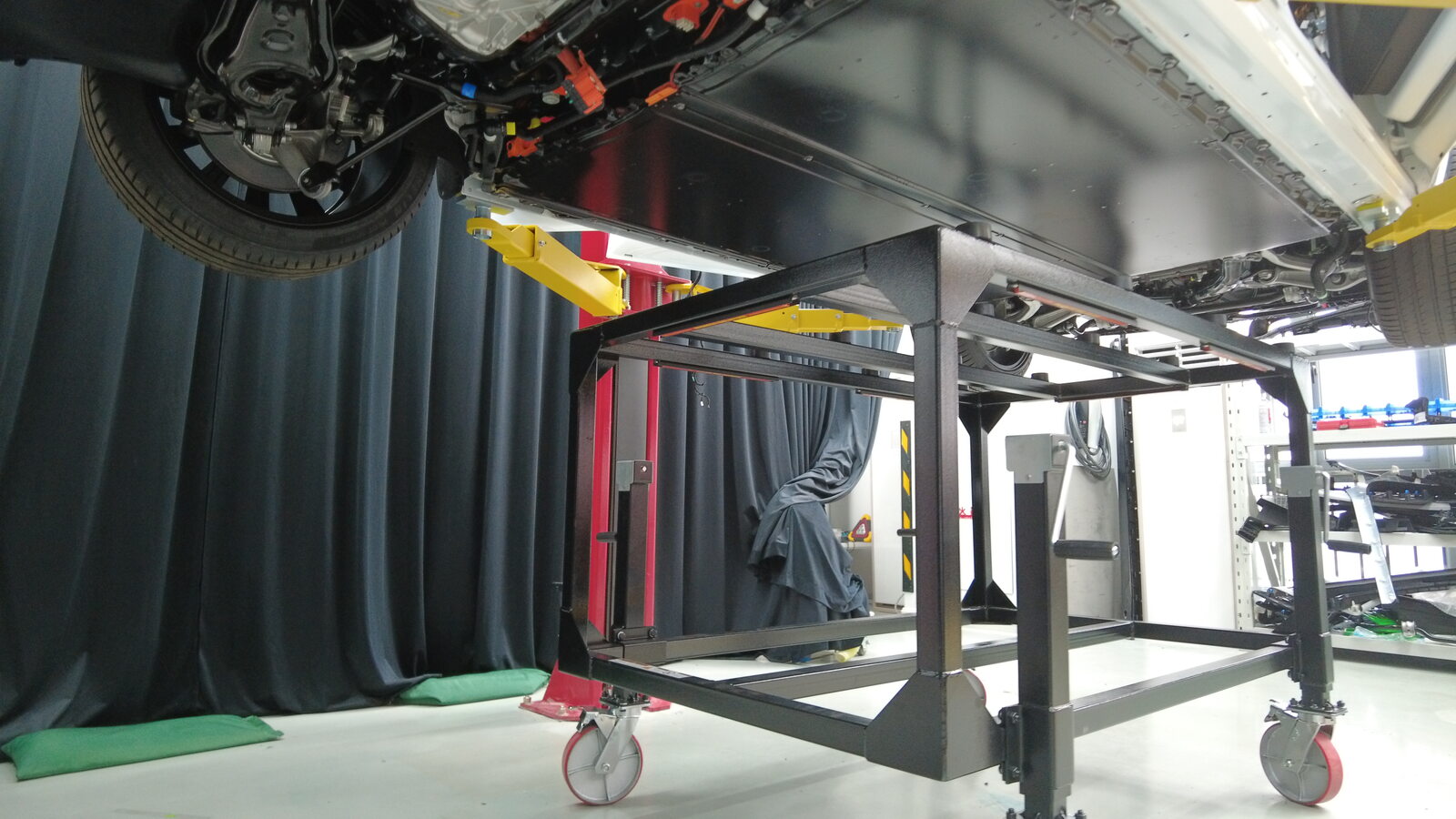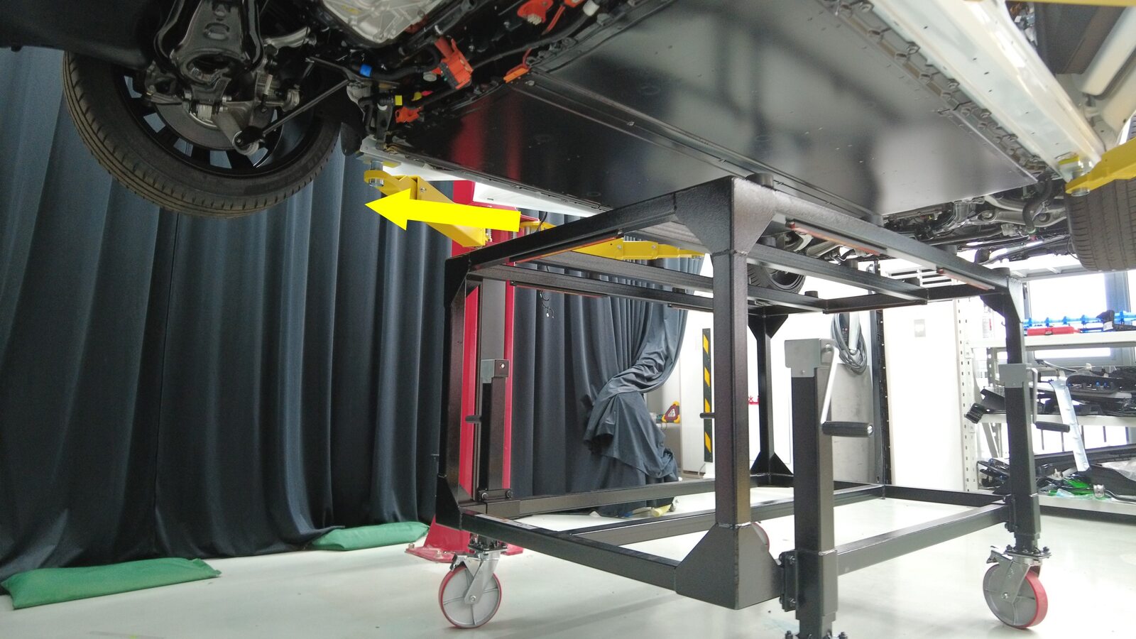 Position air bag beneath rear cabin carpet to raise and allow access to rear inner HV battery bolts