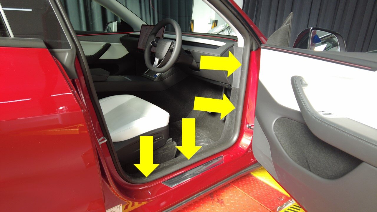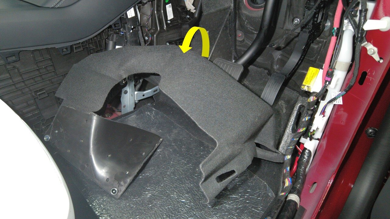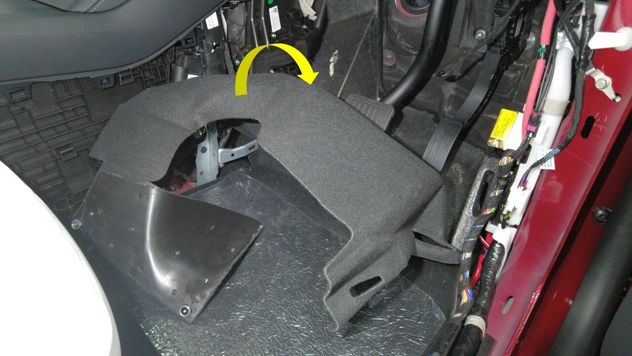 注Maneuver carpet below brake pedal and accelerator pedal, Different regions may stick the carpet and foam together and tear them apart