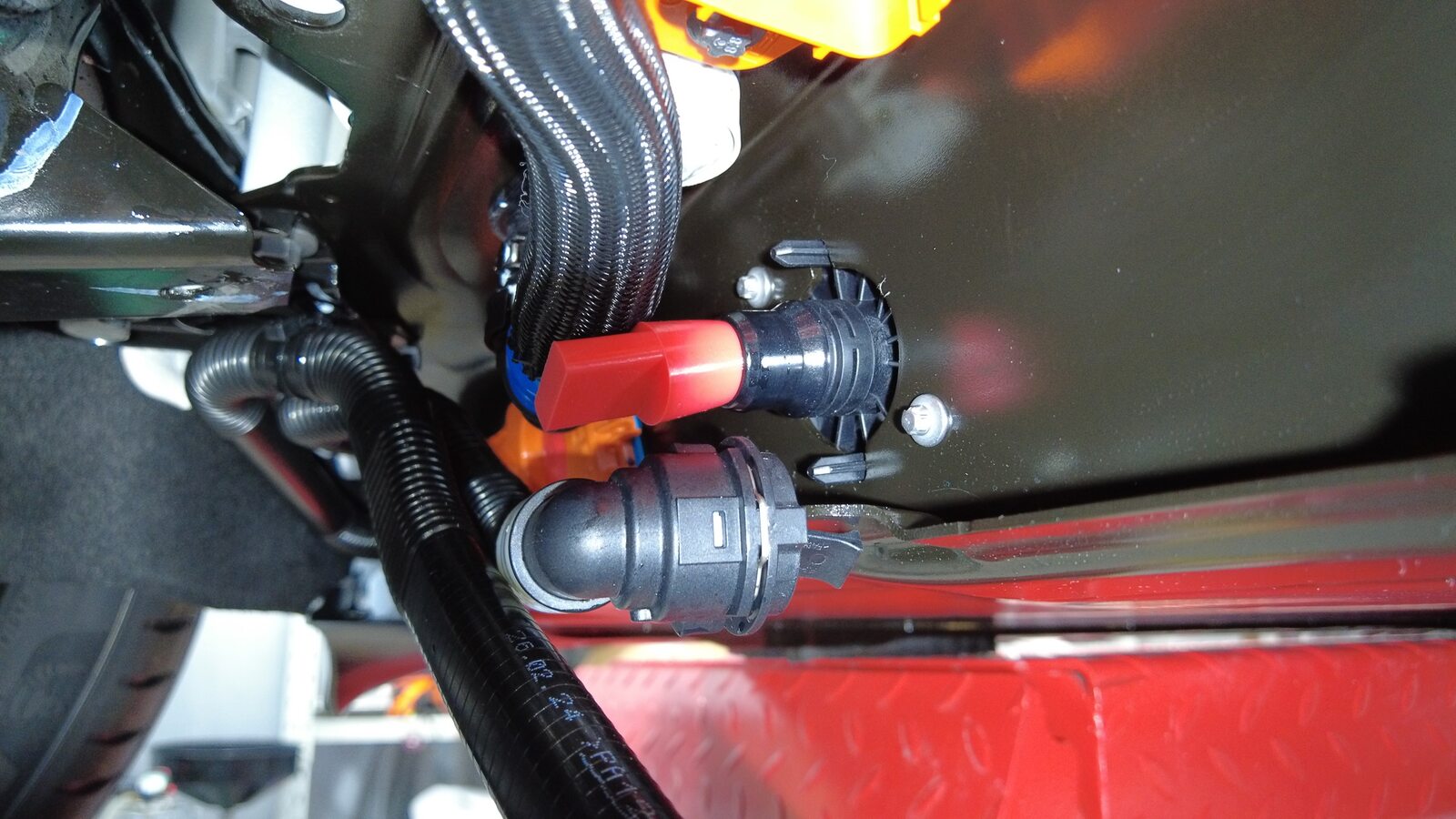 Install clips securing LH rocker cover and rocker carrier to LH front wheel liner