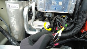 松开锁片,然后断开驾驶室右侧冷凝器膨胀阀上的电气连接器。