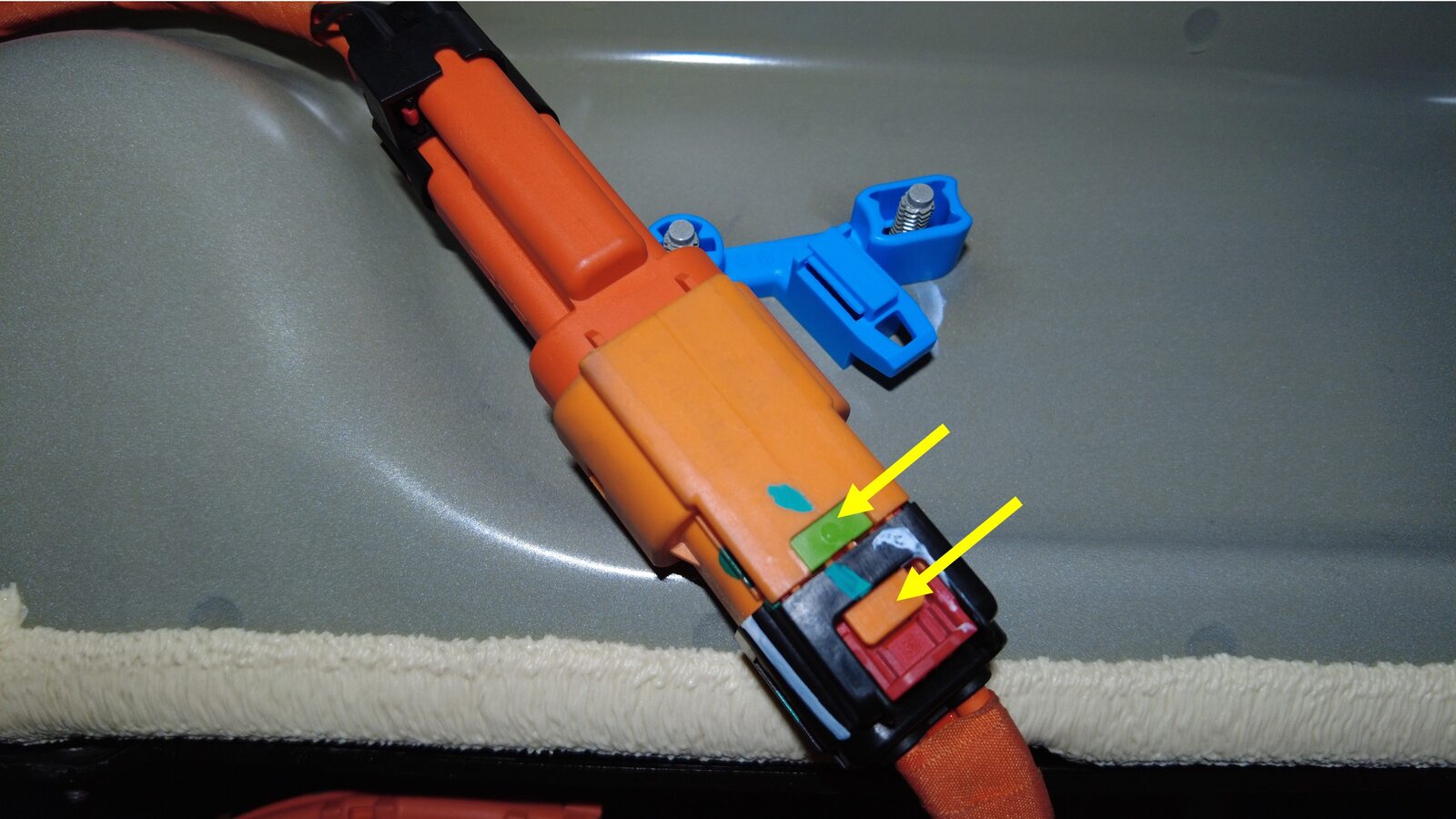 注将红色锁片拉离连接器以断开,然后按压黄色锁片并将连接器向后拉动,再按压绿色锁片以松开连接器。