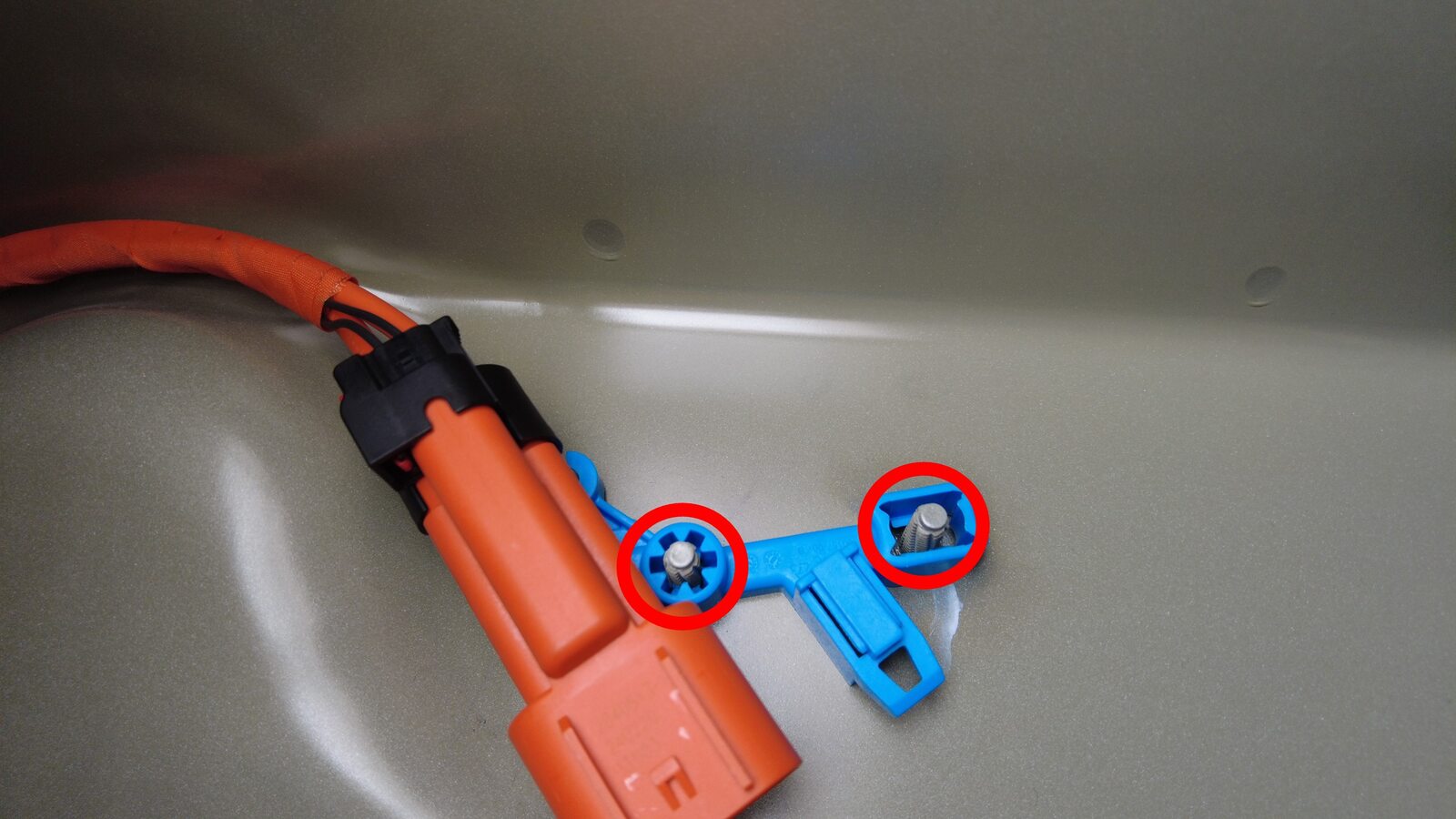 将高压连接器底座支架从隔热板左侧螺柱上松开。