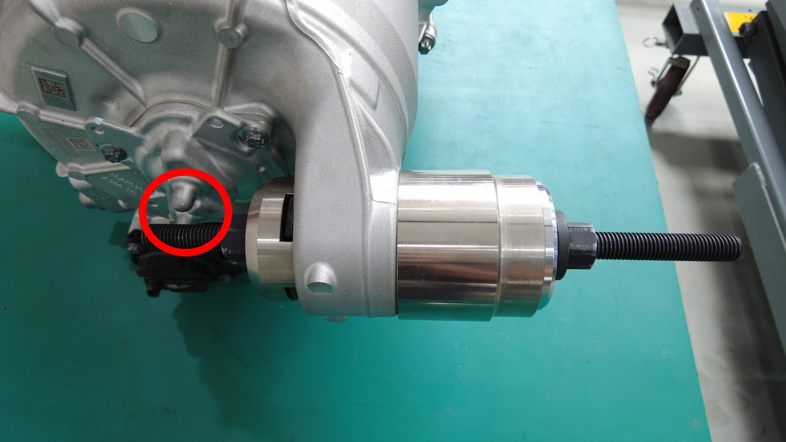 - 将另一螺母固定在适当位置,同时用扳手转动轴承侧套管拆卸工具螺母。
