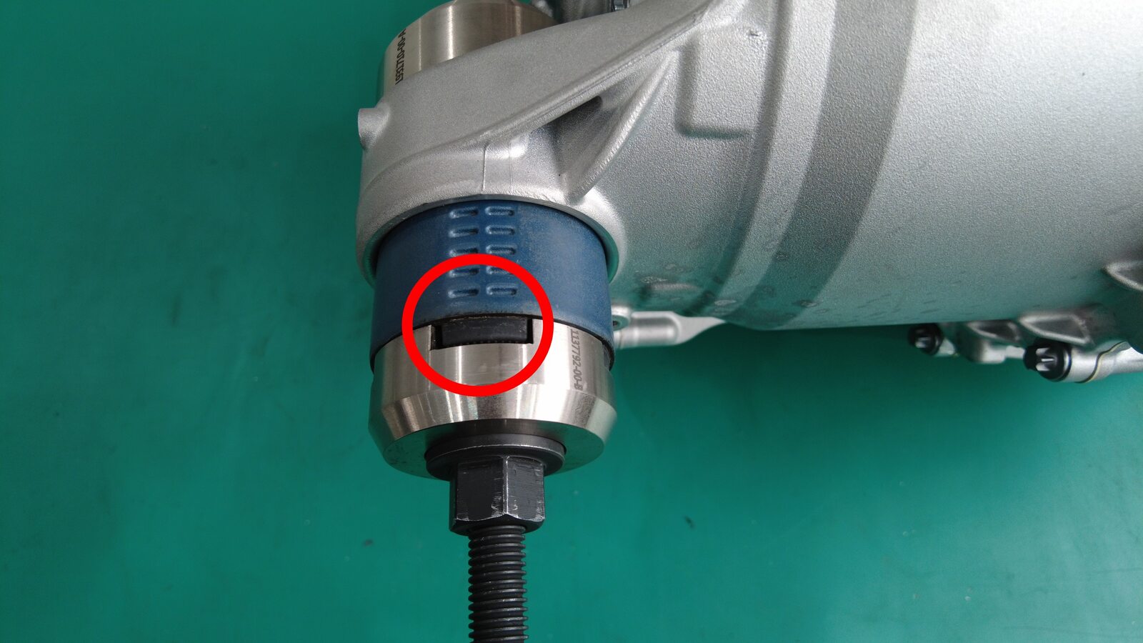 - 旋转止推垫圈上的螺母,以将新的套管压入驱动单元。
