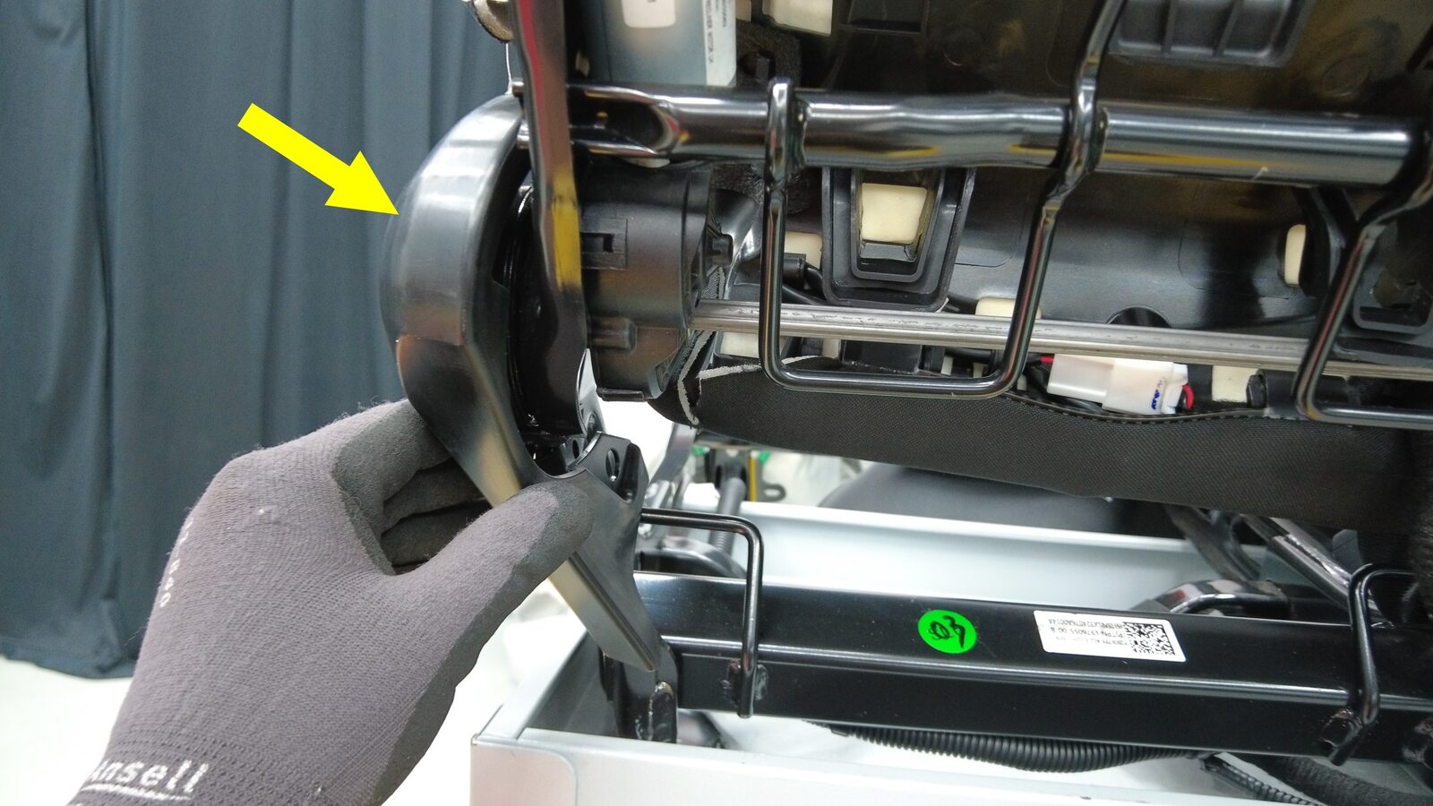 将 B 柱盖板外侧内件安装到左侧座椅框架上。