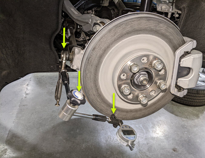 将制动盘偏转挠性杆安装到后止推杆螺栓上并设置以便读取。