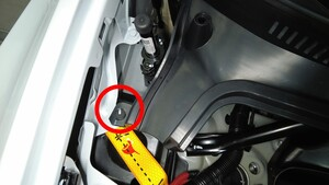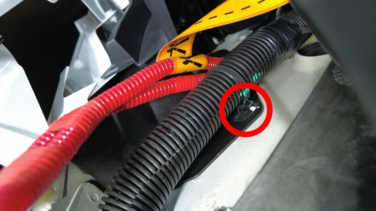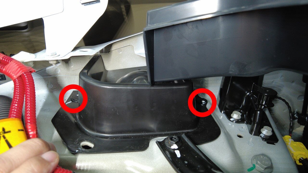 抬起前围篦板以安装右减震塔盖板,然后紧固夹子。