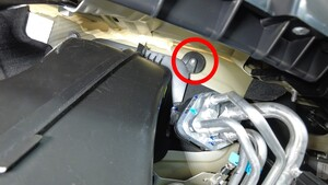 安装将新鲜空气进气槽固定到减震塔支架的螺栓。