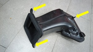 慢慢松开将新鲜空气进气槽固定到车辆的卡子(2 个)和销,然后将进气槽从车辆上拆下。