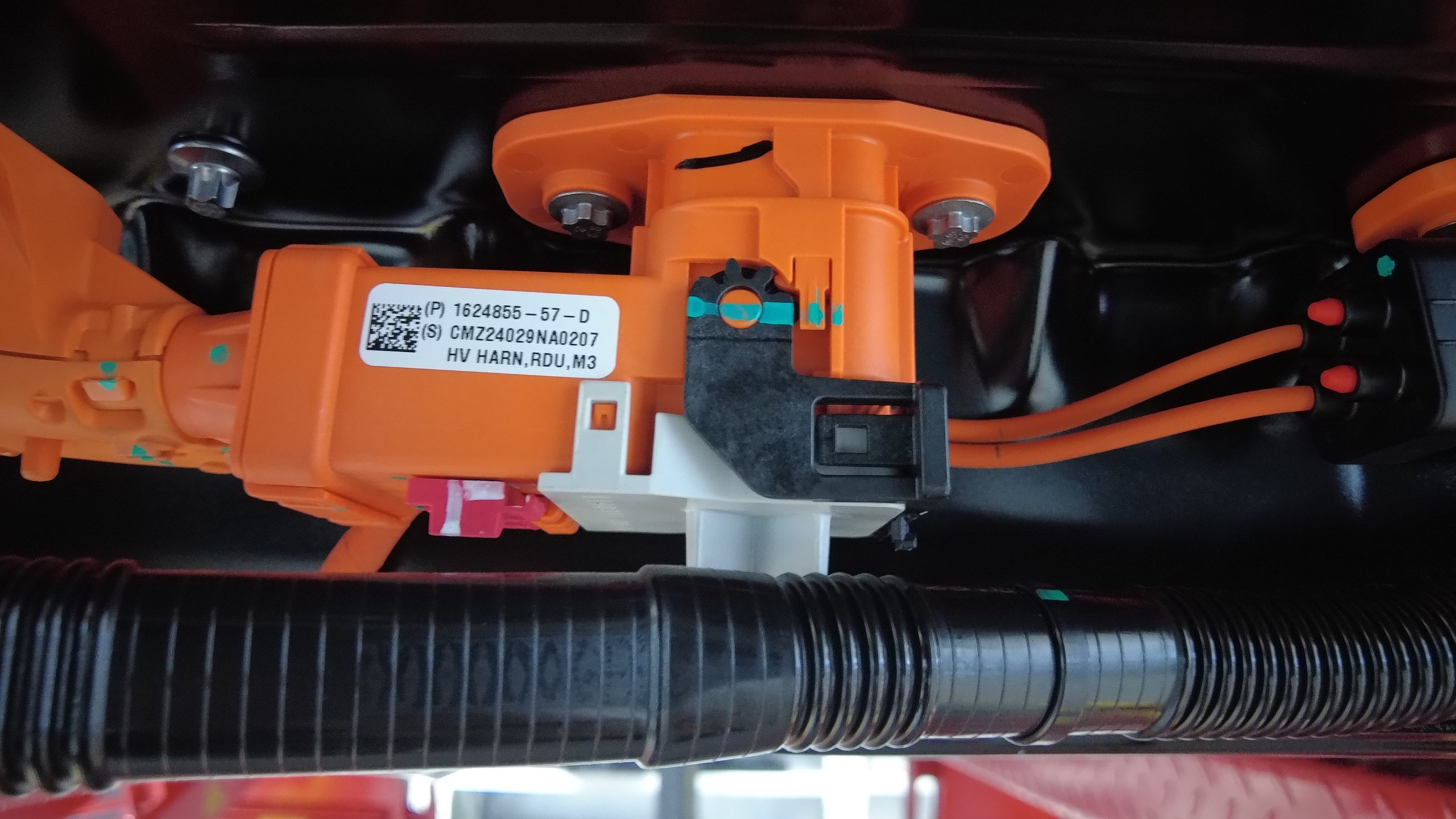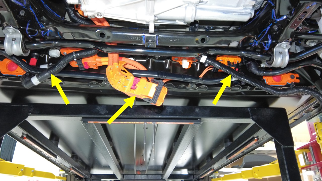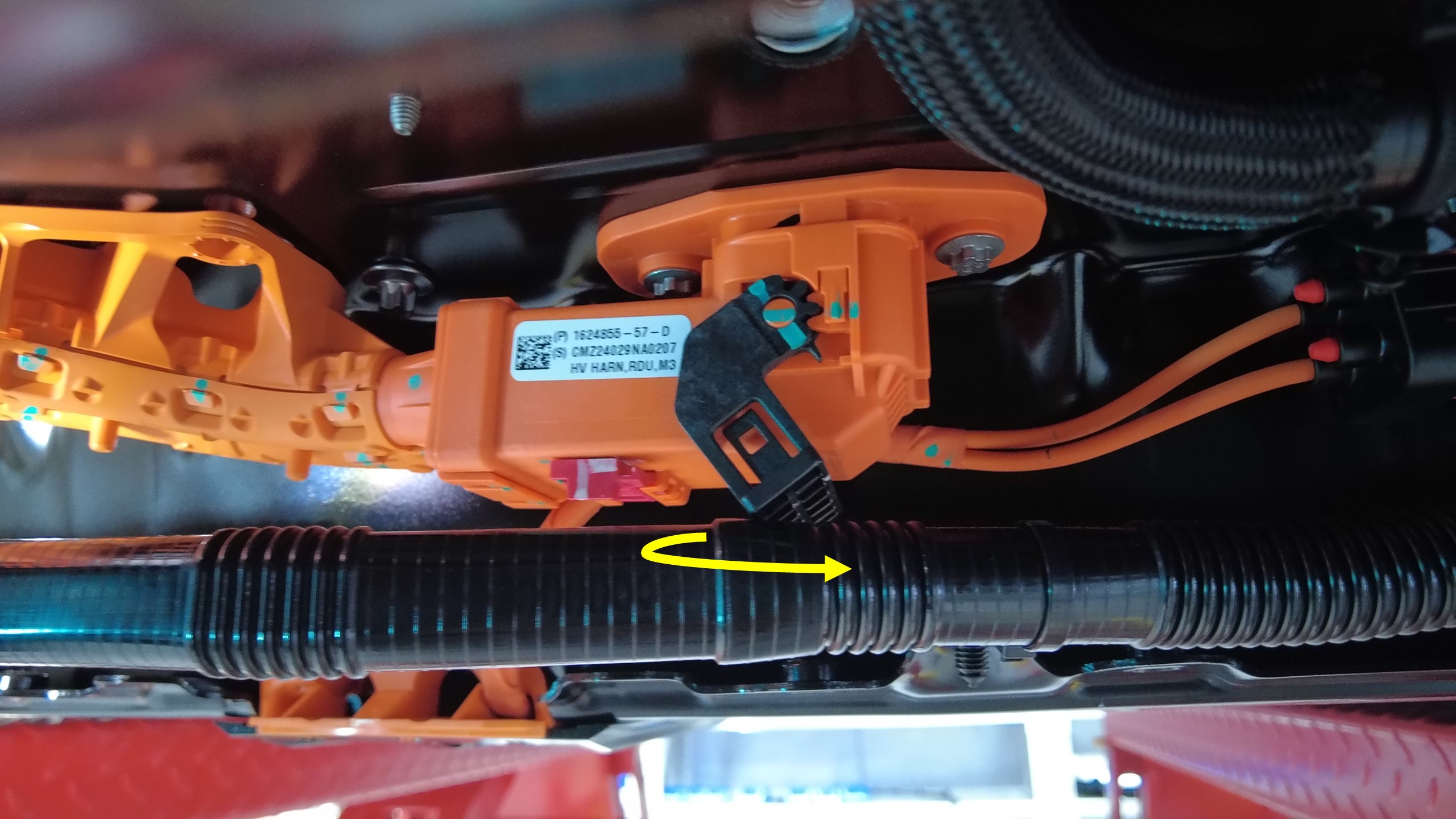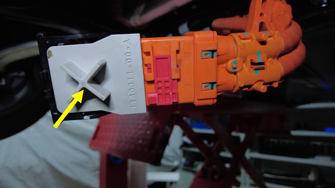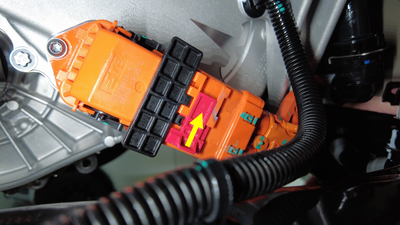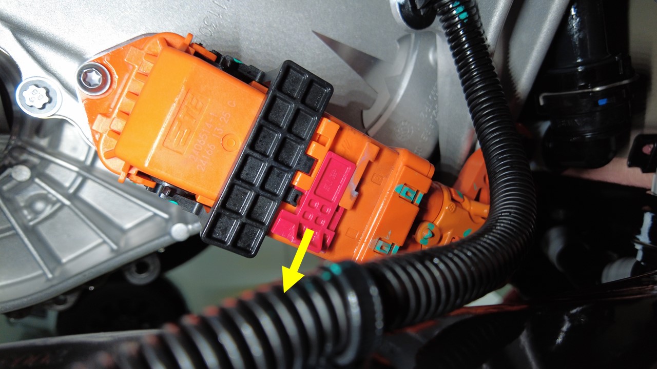 连接前驱动单元高压线束连接器。
