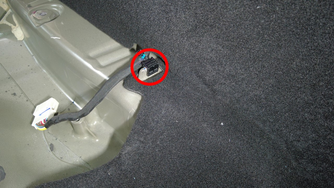 注将地毯从两侧的后备箱饰板上拉开。拆卸时,请确保将第二排座椅线束穿过地毯。