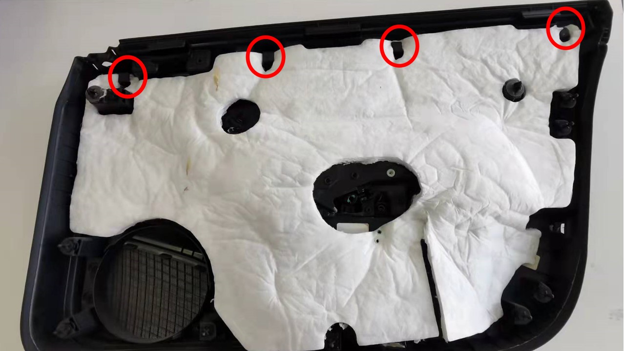将左前车门 NVH 垫安装到锁片(4 个)上。