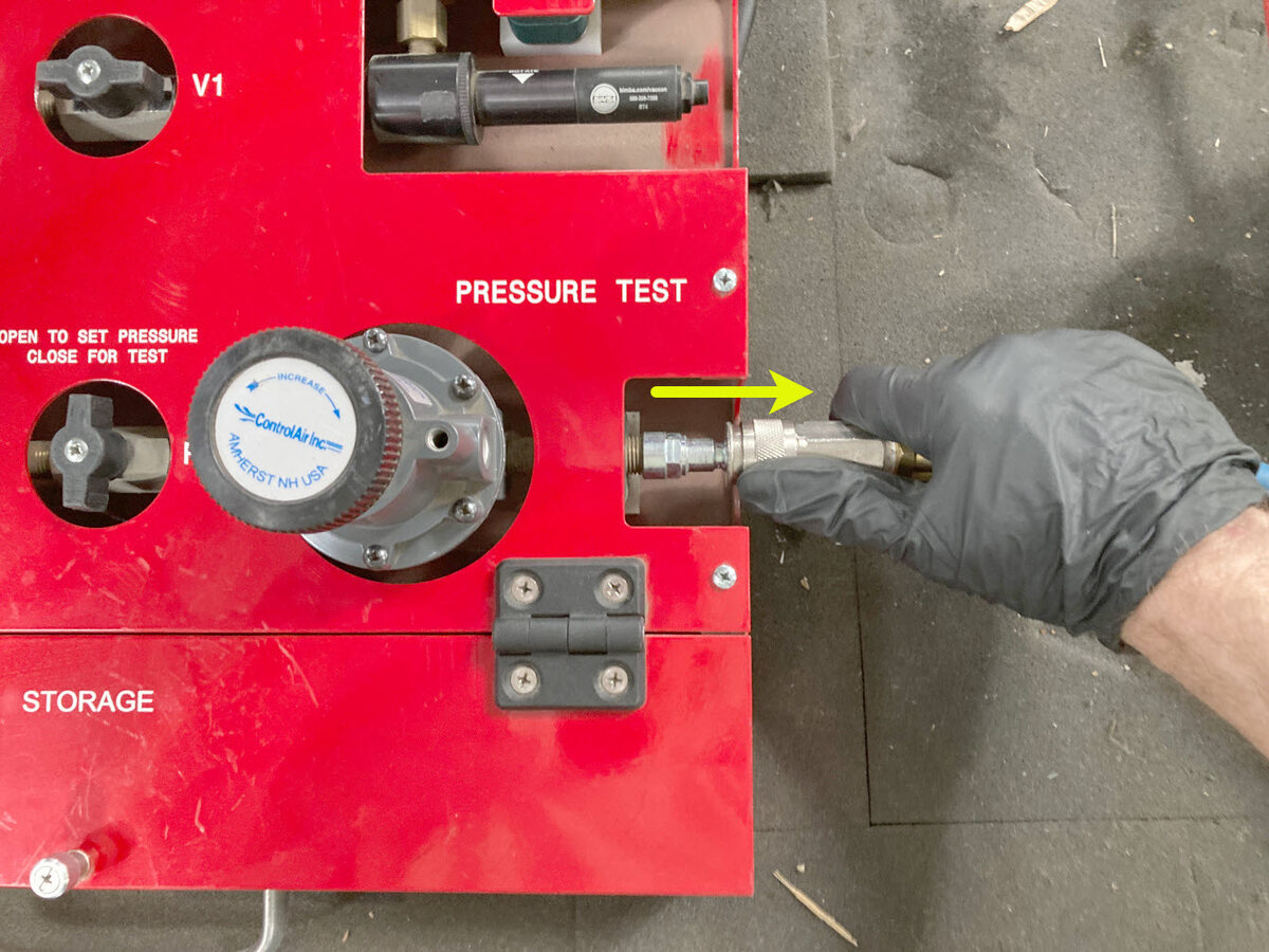 将供气软管连接到驱动电机压力测试固定装置右侧。