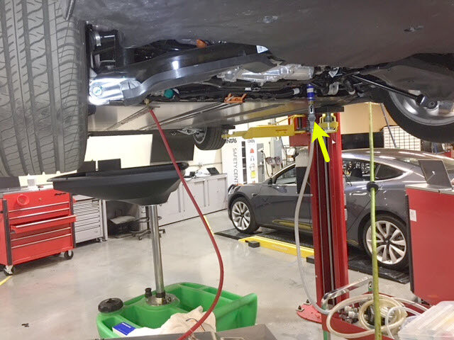 - 在高压电池右后侧下方放置冷却液排放容器。