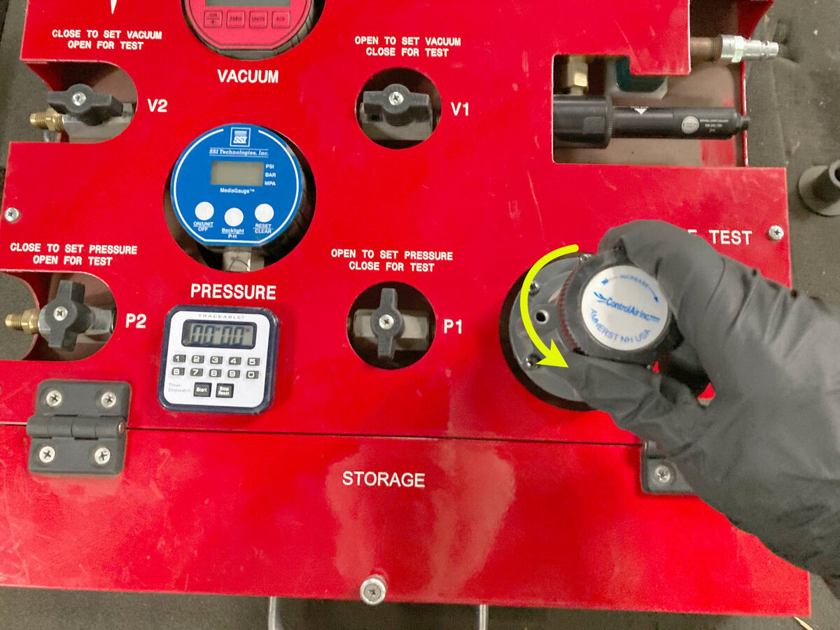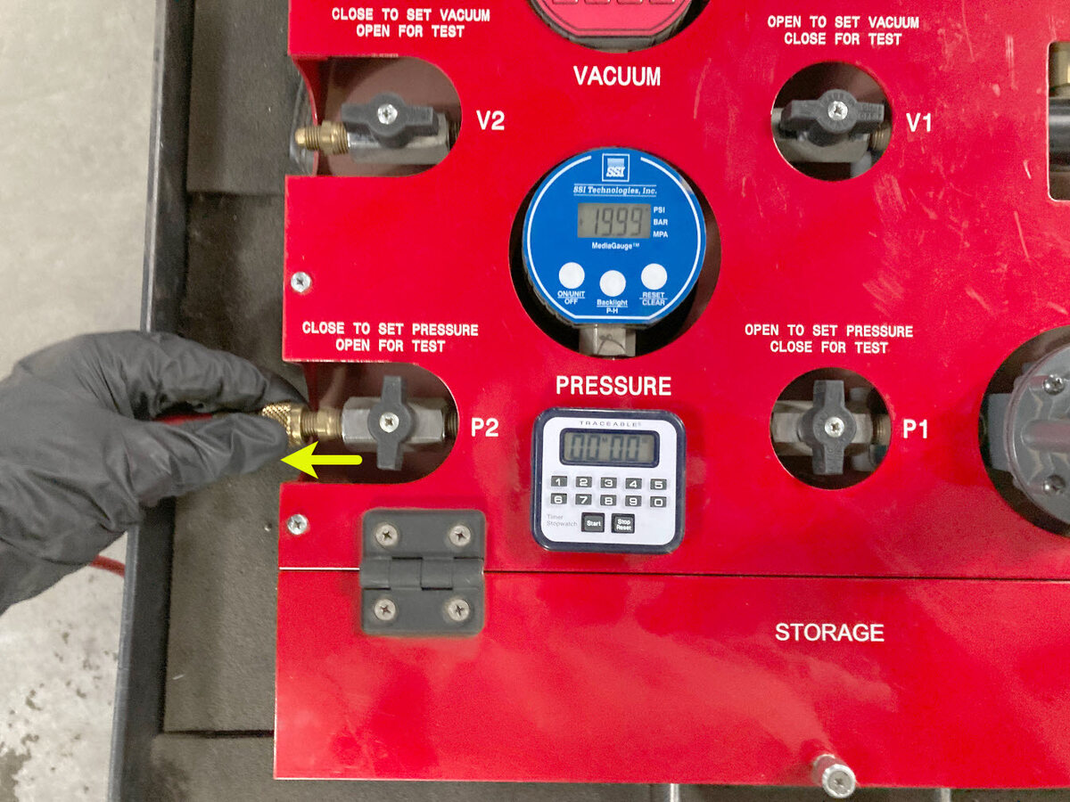 顺时针转动 P1(入口)阀以关闭阀门,然后启动定时器。
