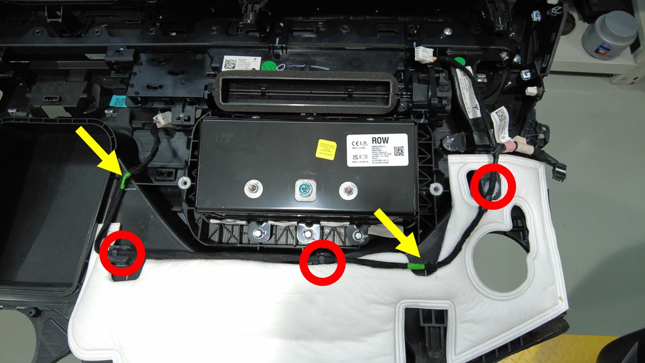 安装夹子(3 个)和锁片(2 个),以固定仪表板右侧饰板线束。