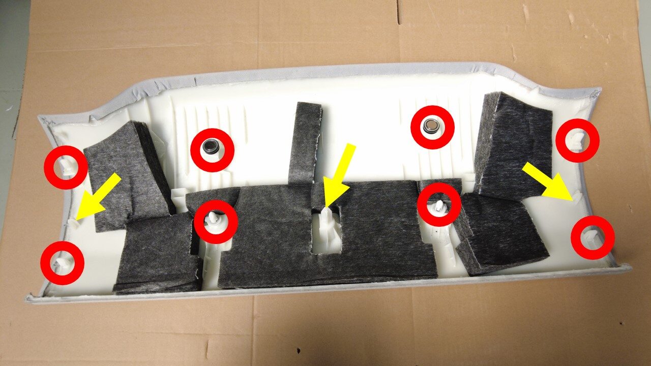 松开将后顶篷面板固定到车辆的卡子(6 个)和磁铁(2 个),然后拆下后顶篷面板。