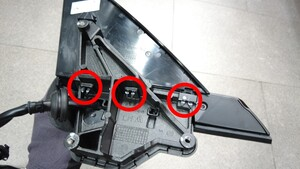 松开将左前外后视镜处 A 柱饰板固定到左前外后视镜总成的锁片(3 个),然后将饰板从后视镜上拆下。