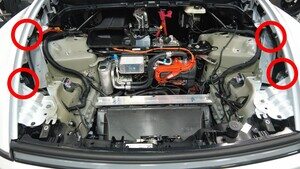 拆下用于固定前备箱储物单元的螺栓(4 个)。