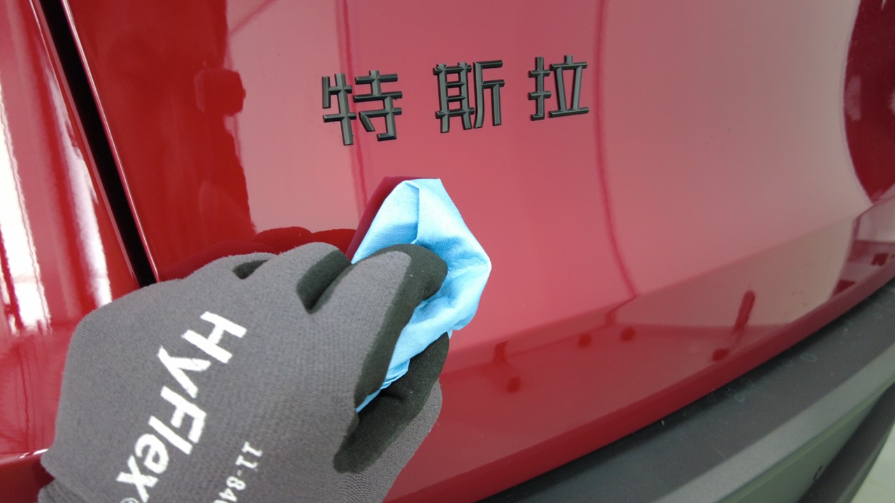 使用异丙醇 (IPA) 湿巾清洁掀背尾门表面残留的所有粘合剂和杂物。