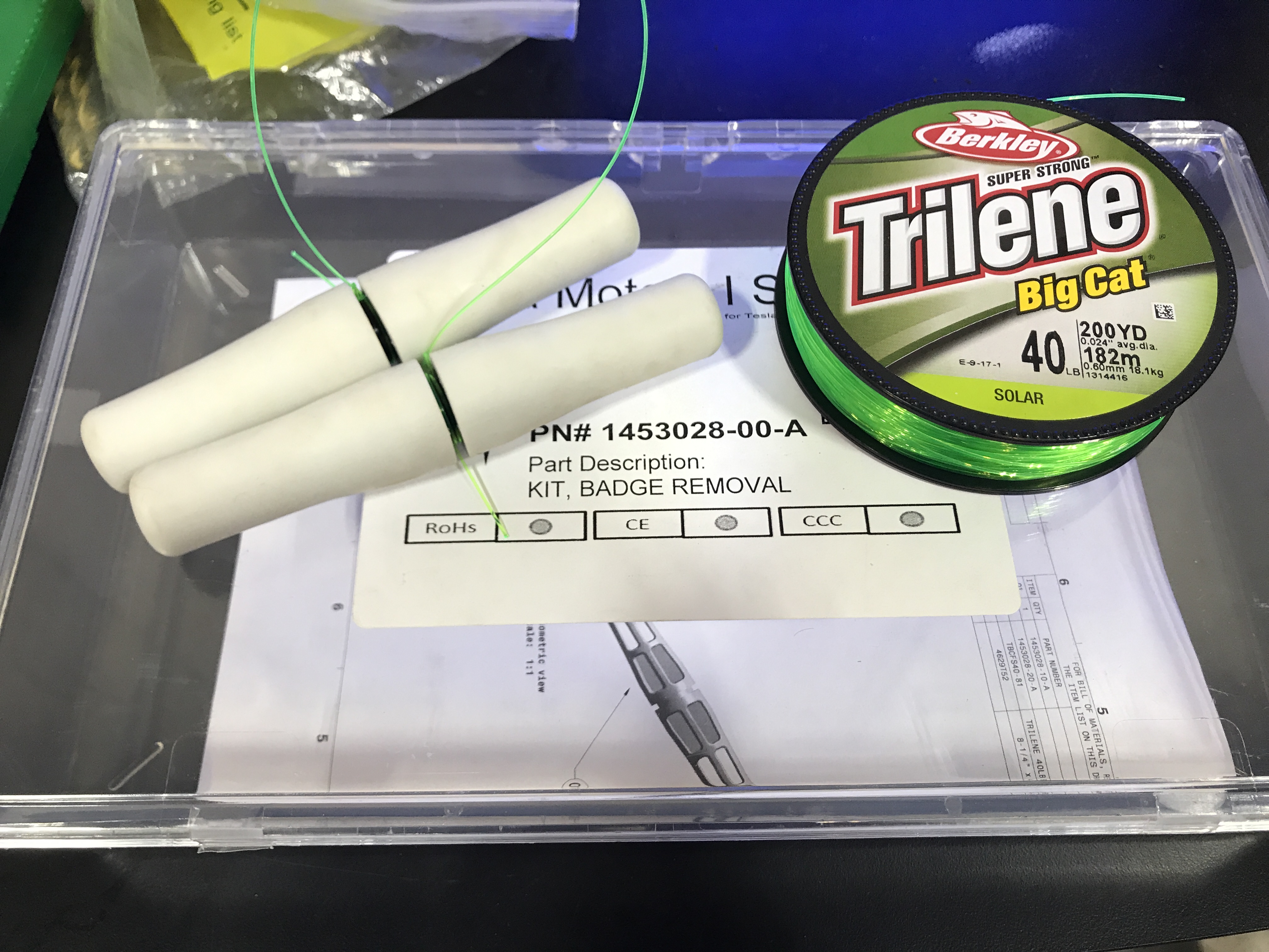 - 准备徽标拆卸工具 (1453028-00-A) 和约 24 英寸/60 厘米长的单丝线。