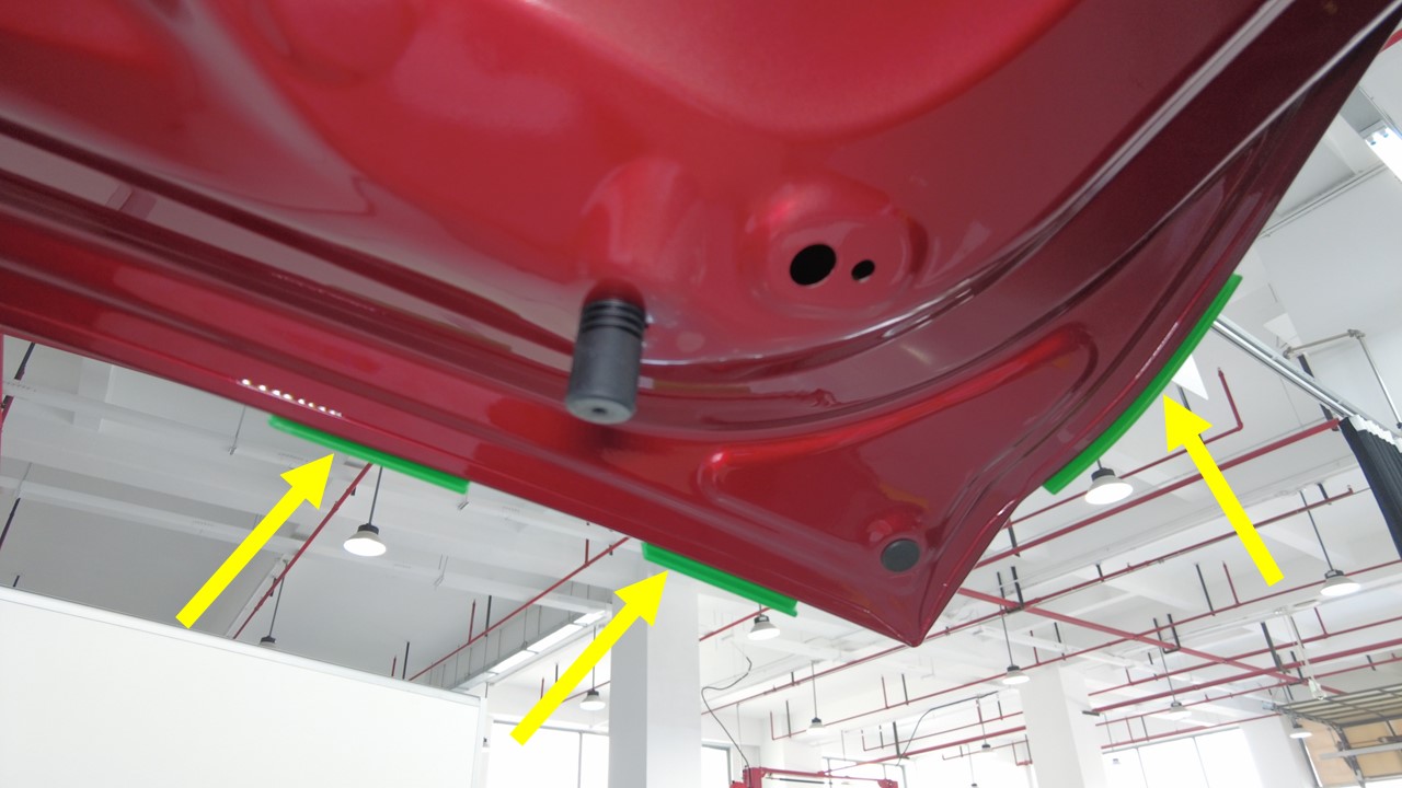 将掀背尾门调整到合适的高度,然后将夹具安装到掀背尾门上的正确位置。
