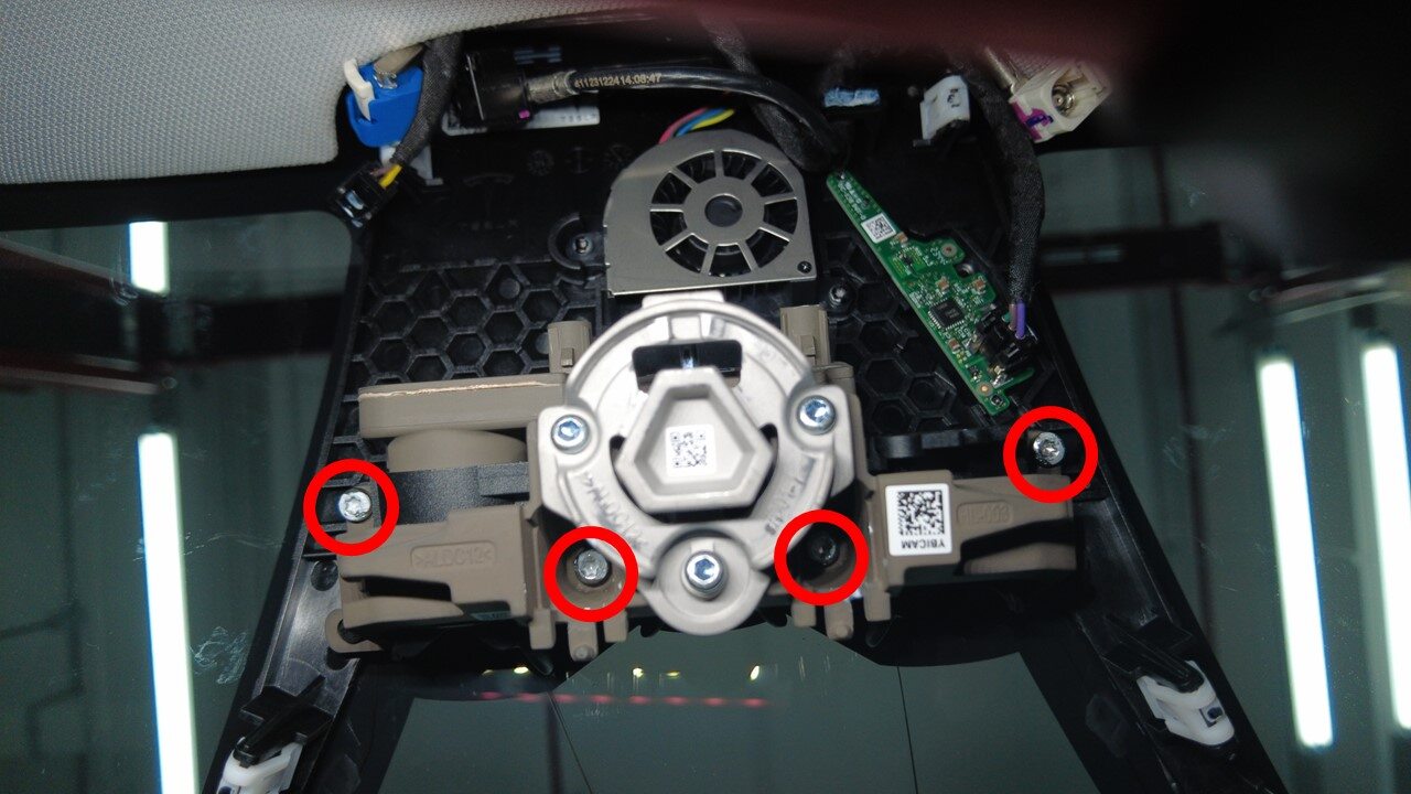 | Bolts (x4) that attach the forward facing camera assembly to the windshield bracket |