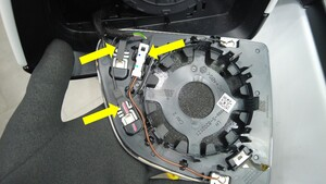 将电气连接器(3 个)从后视镜玻璃上断开。