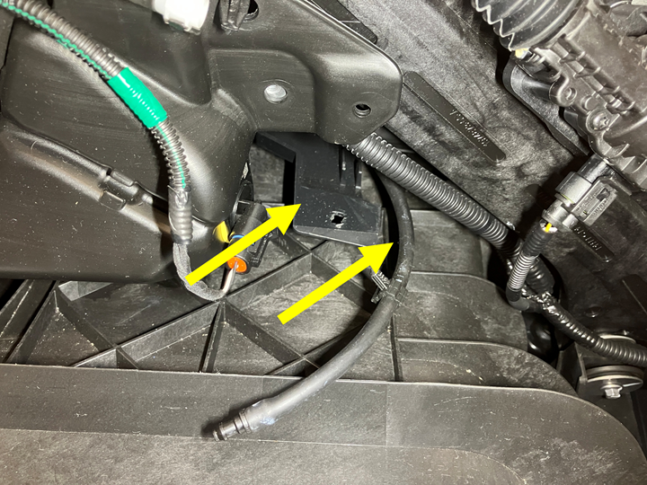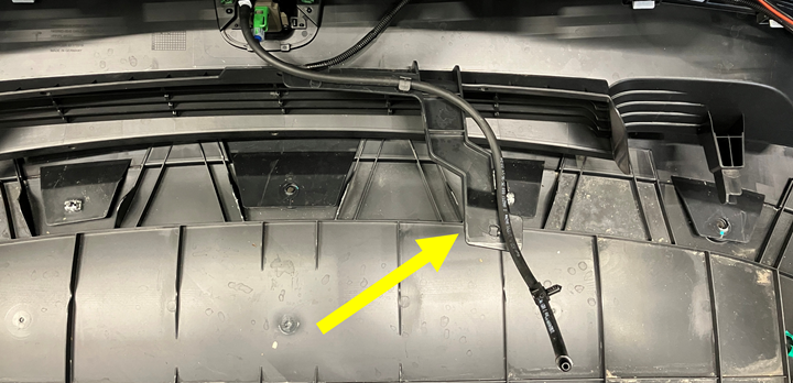 连接前保险杠饰板摄像头清洗器软管,然后安装将软管固定到车辆的卡子。