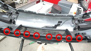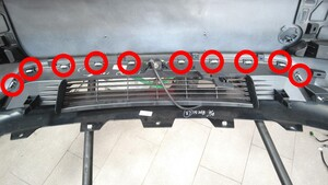 拆下将格栅固定到前饰板的卡子(18 个),然后将格栅从前饰板上分离。