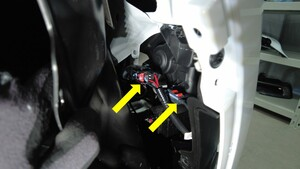 连接行人警示连接器,然后安装将行人警示线束固定到扬声器的夹子。