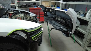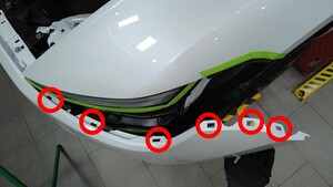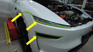 沿左右前照灯和前翼子板粘贴遮蔽胶带,以保护车漆。