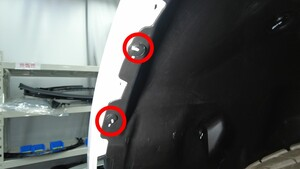 | 将前饰板左右角固定到左前翼子板的螺栓(2 个) |