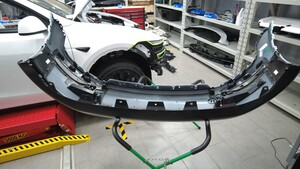拆下将裙板左右角固定到前饰板总成的螺栓(6 个)。