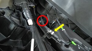 拆下将前饰板左右角固定到左前翼子板的螺栓(2 个)。