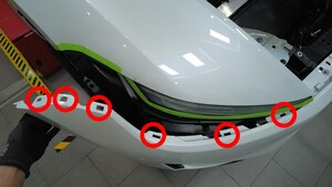 - 揭下前照灯和前翼子板上的遮蔽胶带。