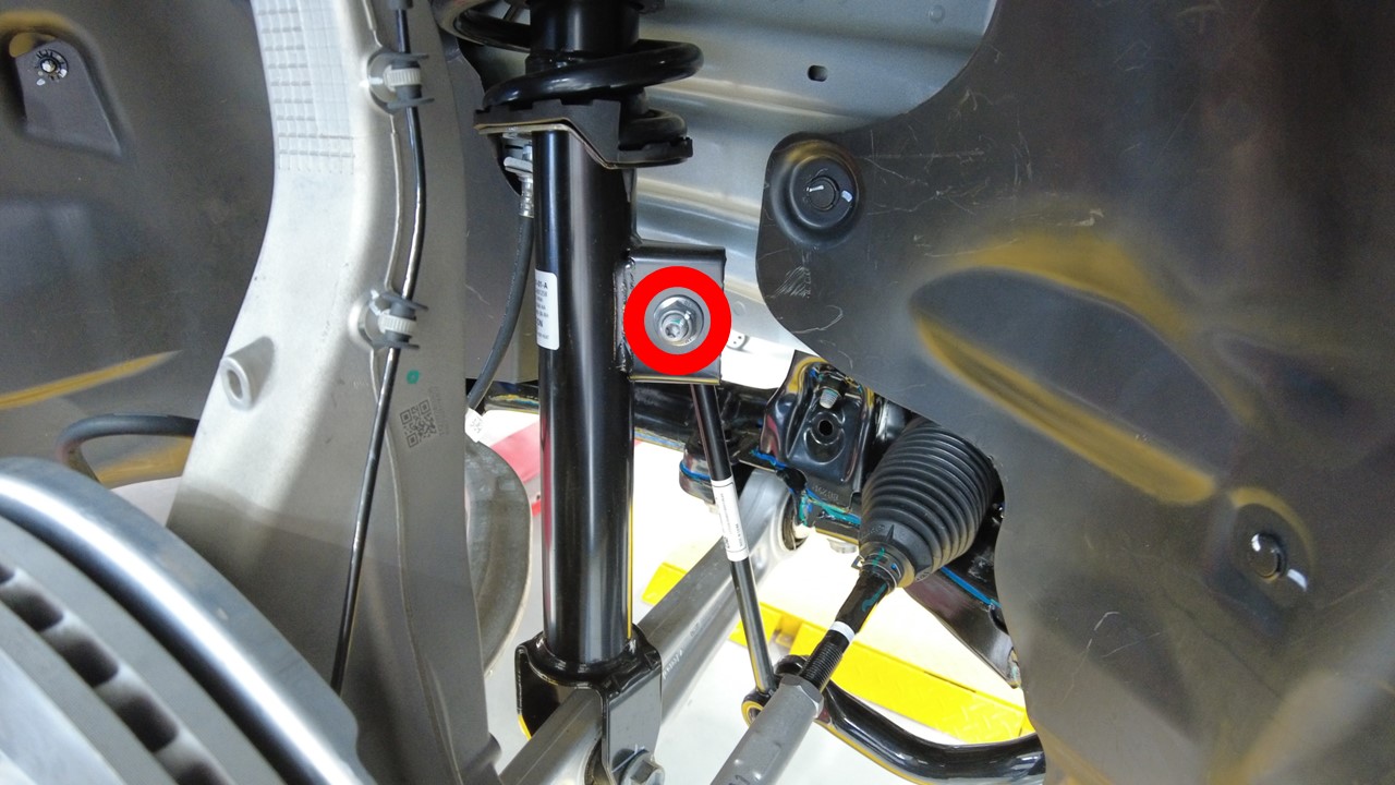 紧固将右前下方横向连杆固定到支柱的螺栓和螺母。