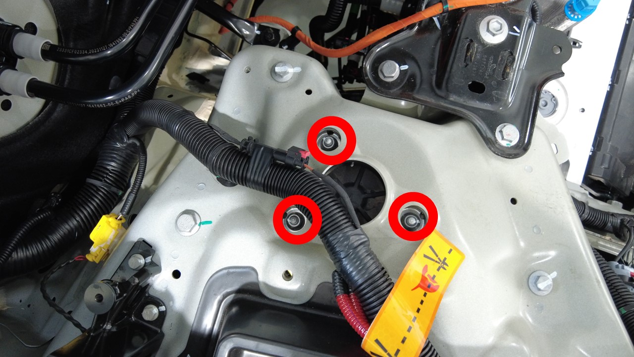 拆下将右侧支架固定到车身的螺栓,然后拆下支架。