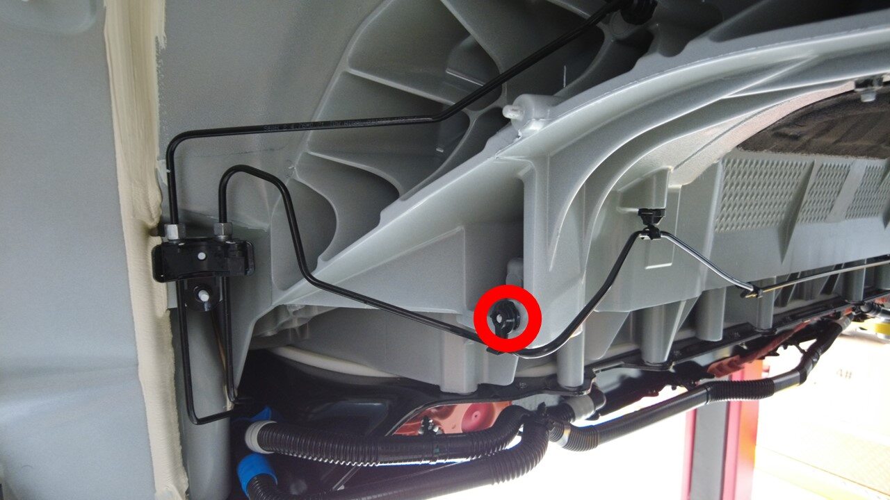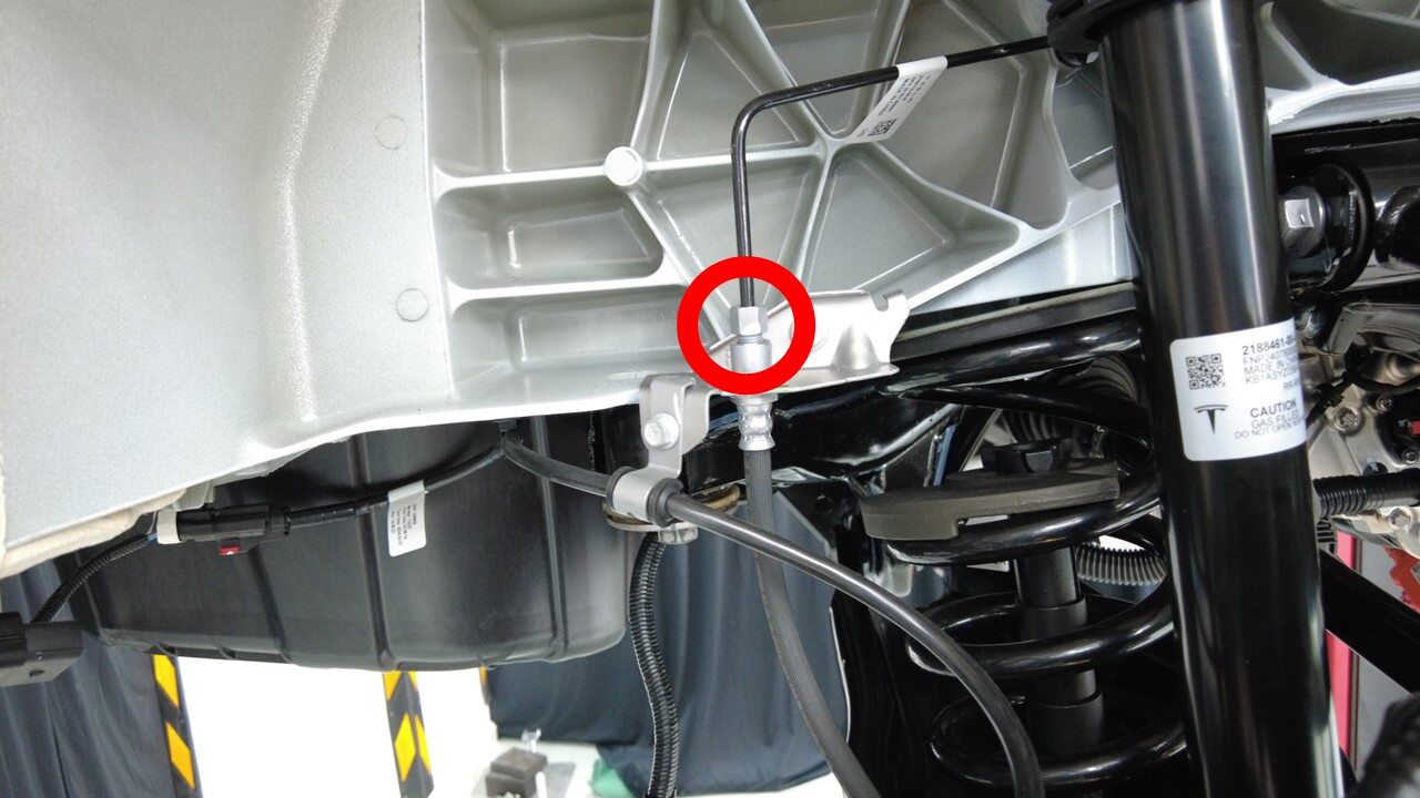 左后制动管路管道内螺母 将右后制动管路固定到右后制动软管的螺母 |