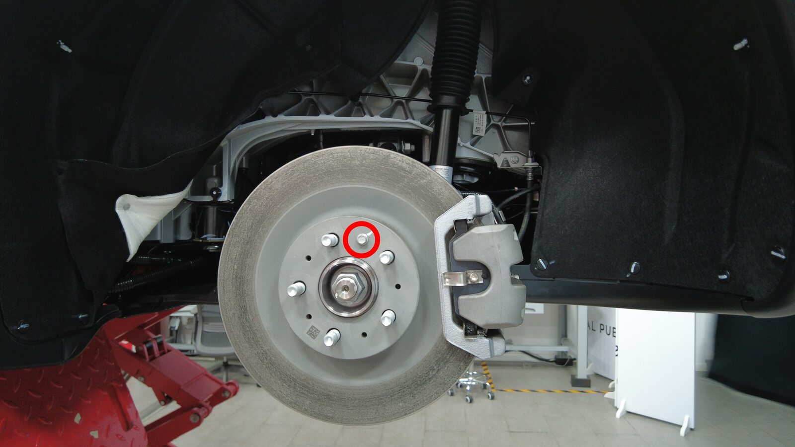 安装将左后制动盘固定到轮毂轴承的螺栓。