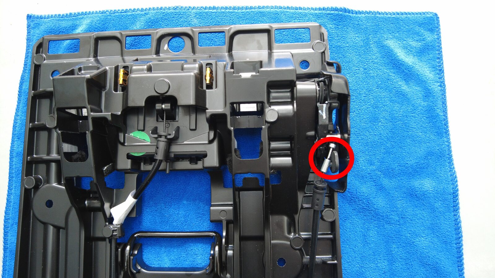 将 20 百分比闩锁传动装置线缆从 20 百分比座椅靠背框架上松开。
